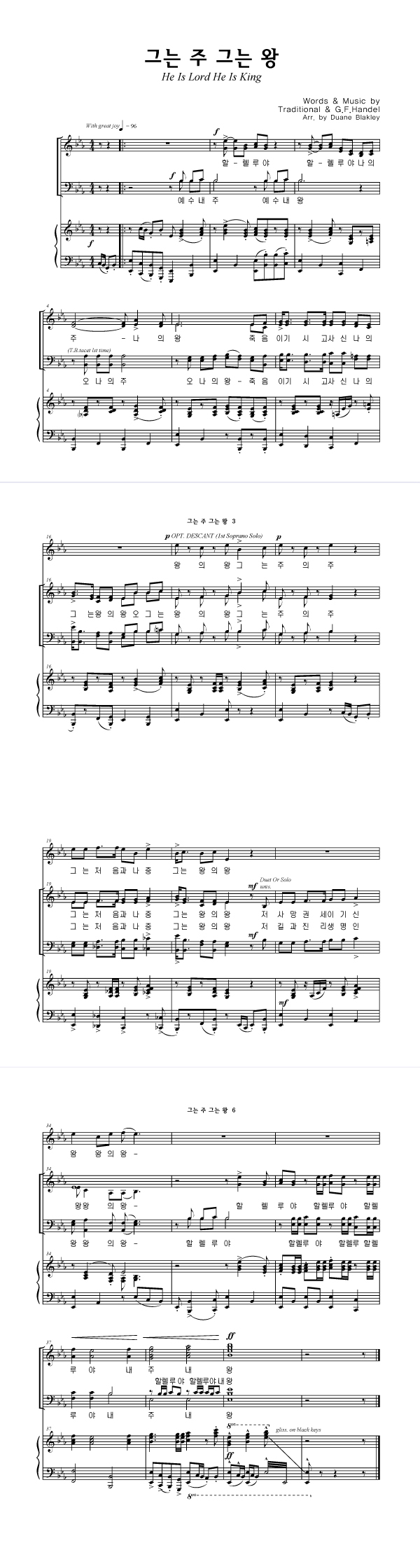 '그는 주 그는 왕' 의 다른 악보형식