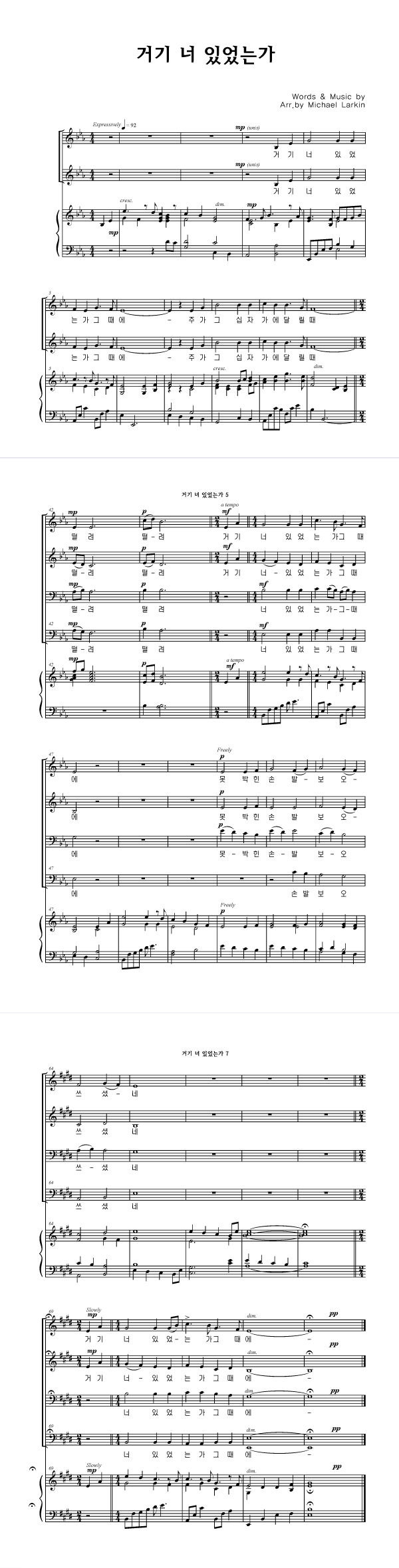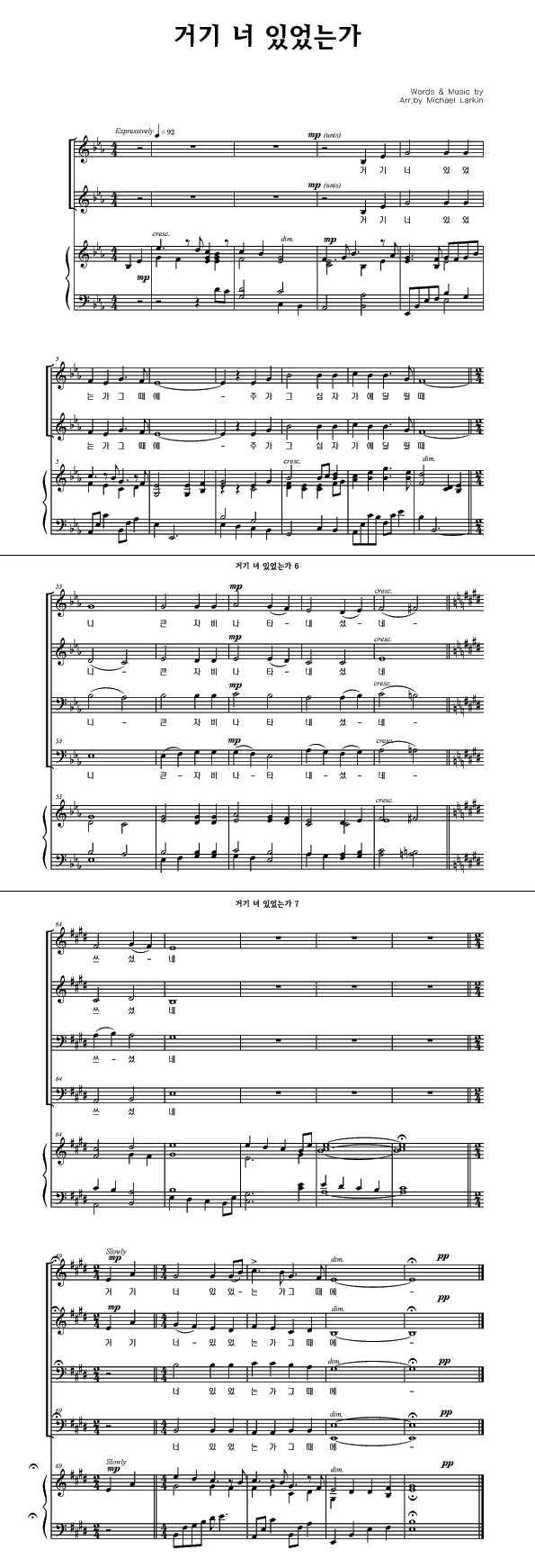 | 거기 너 있었는가 | 성가 3부 + 피아노 반주 |