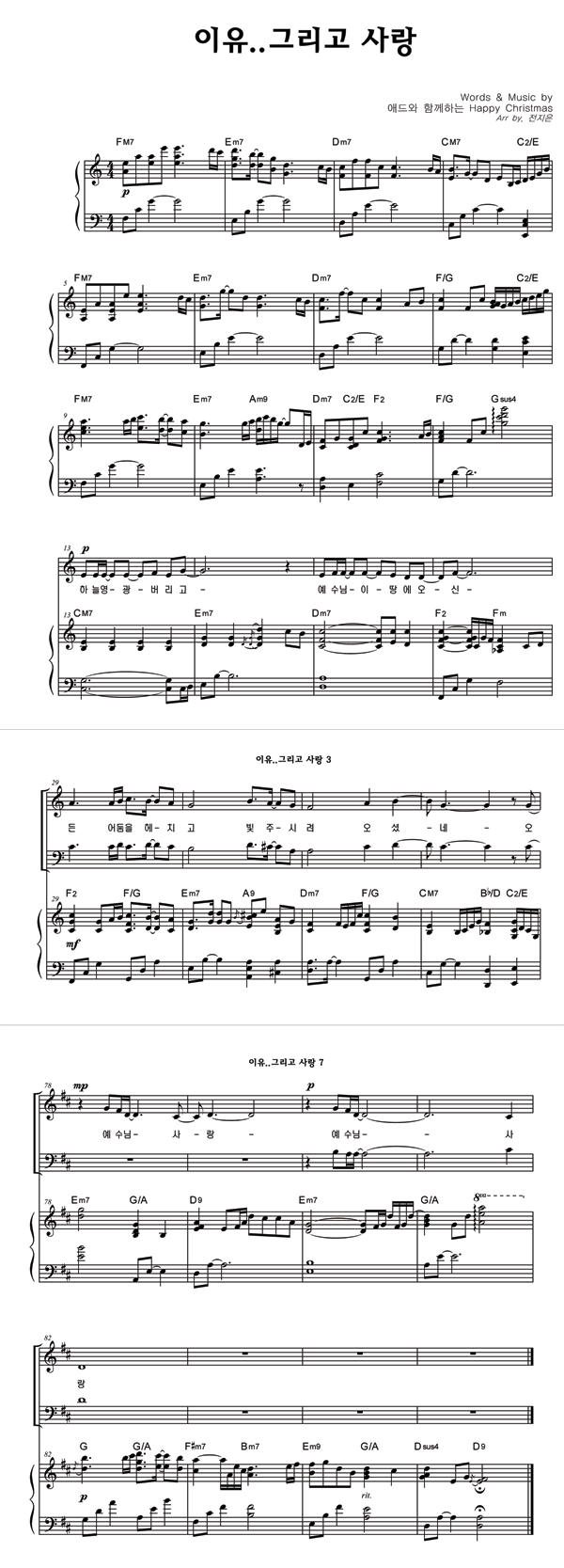 '이유.. 그리고 사랑' 의 다른 악보형식