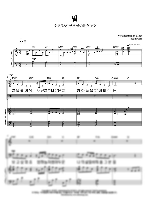 | 별(동방박사, 아기 예수를 만나다) | 성가 4부 + 피아노 반주 |
