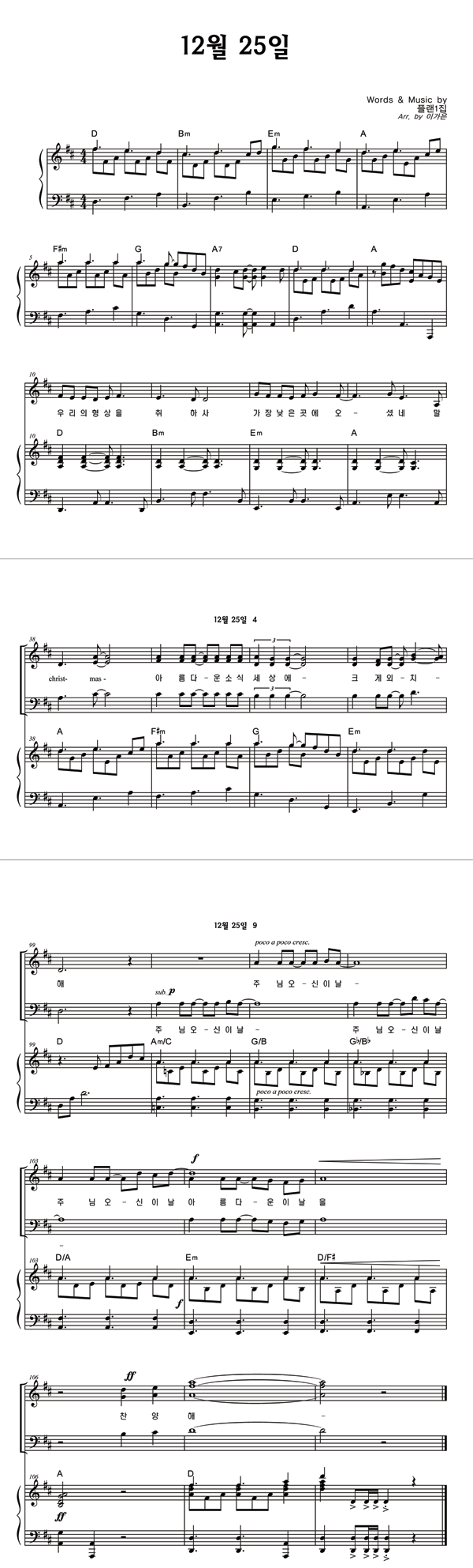 | 12월 25일 큰글씨 | 성가 4부 + 피아노 반주 |