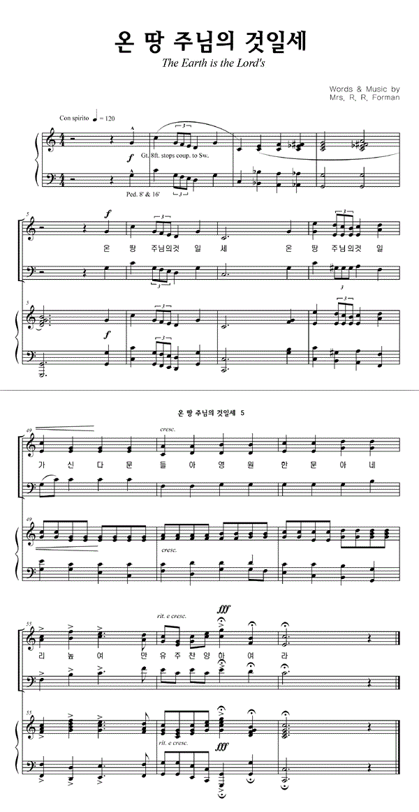 '온 땅 주님의 것일세' 의 다른 악보형식