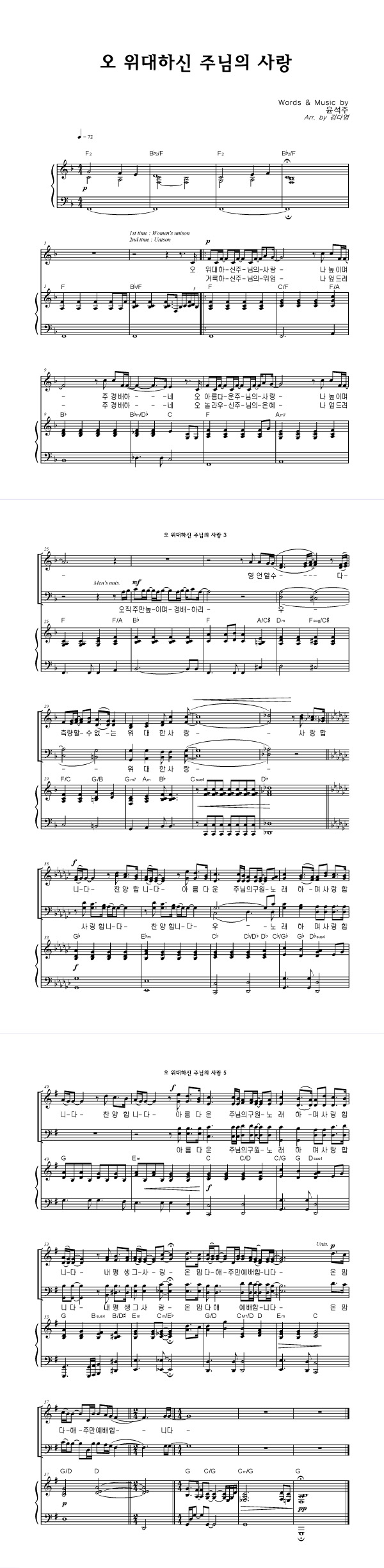 | 오 위대하신 주님의 사랑 | 성가 3부 + 피아노 반주 |