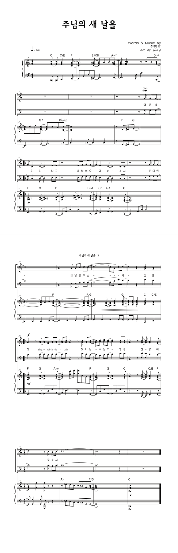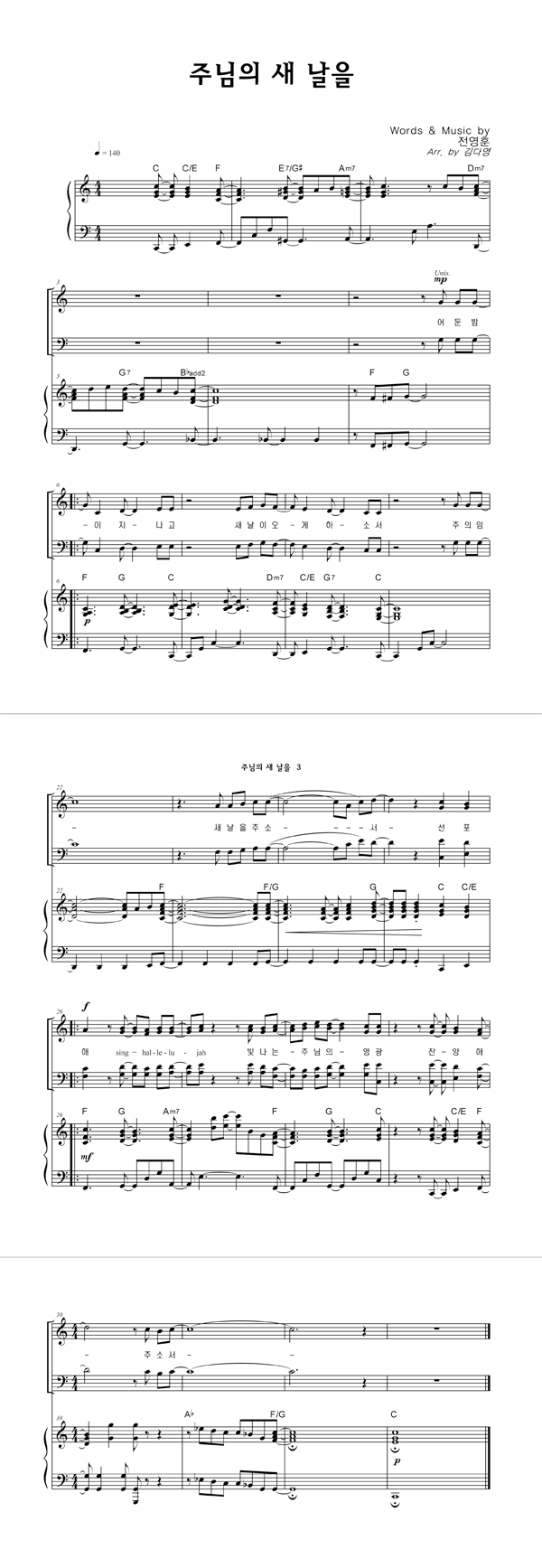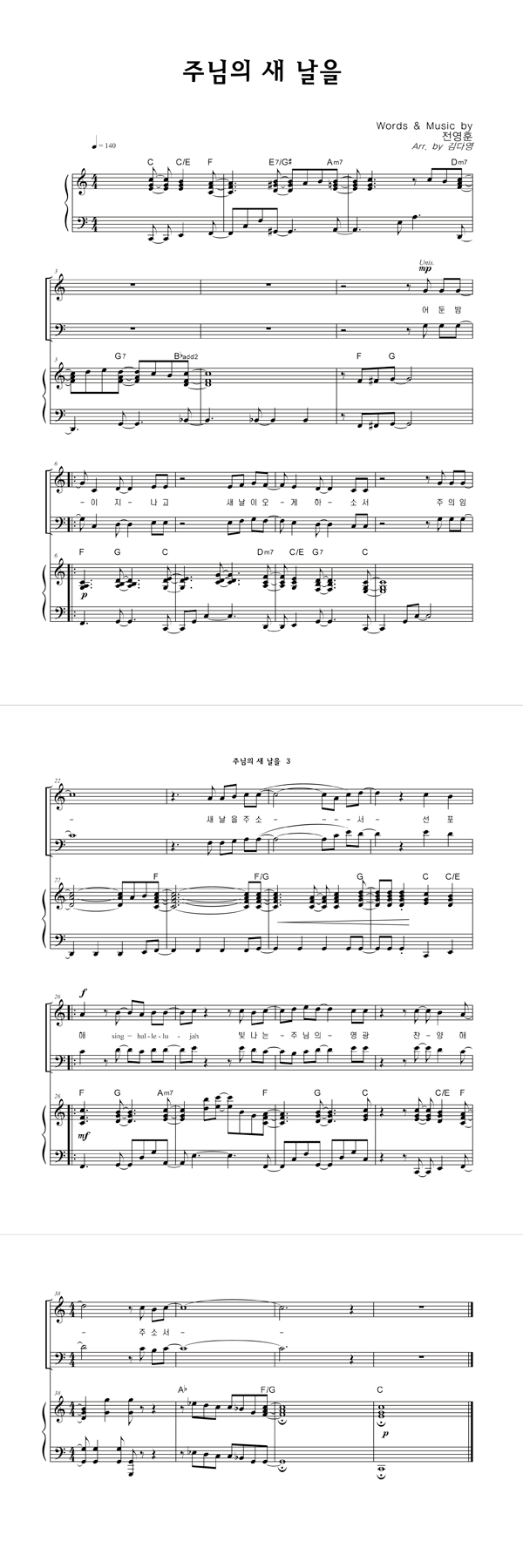 | 주님의 새 날을 | 성가 3부 + 피아노 반주 |