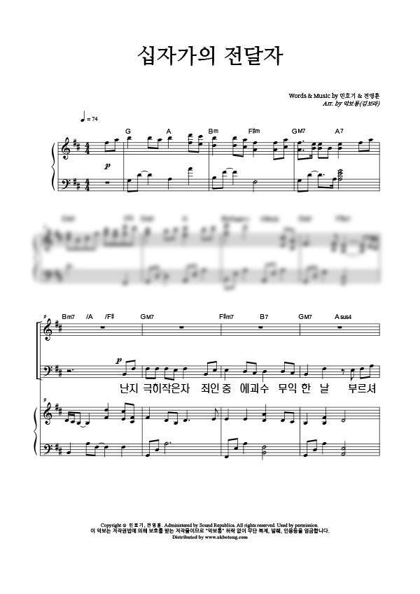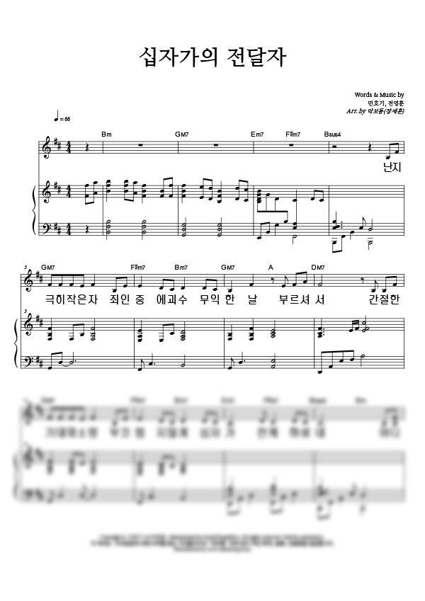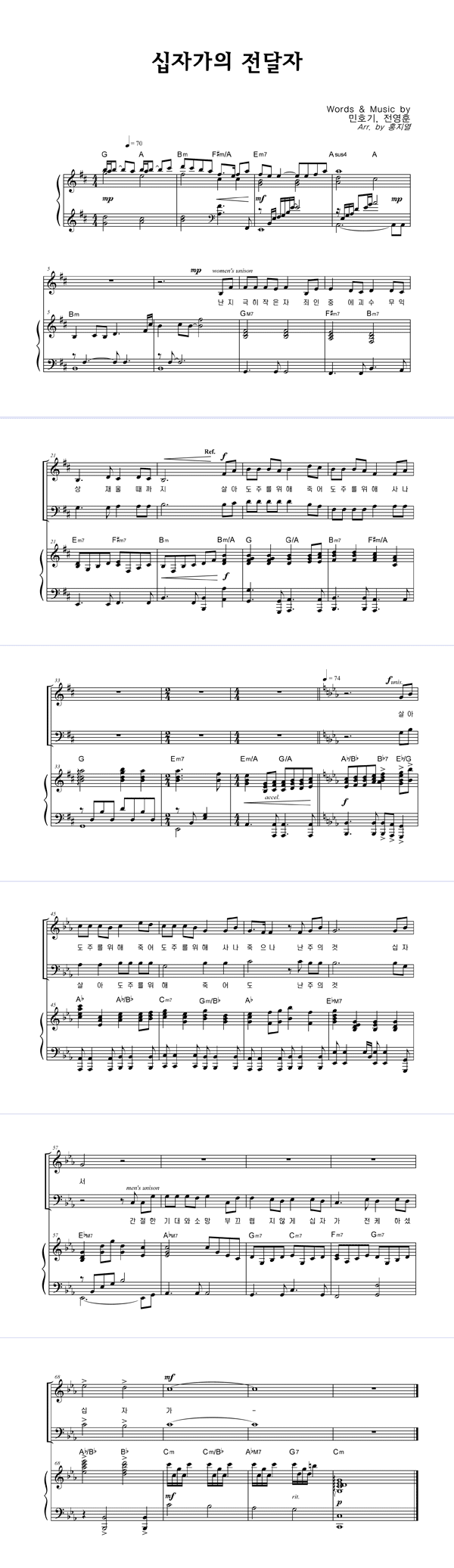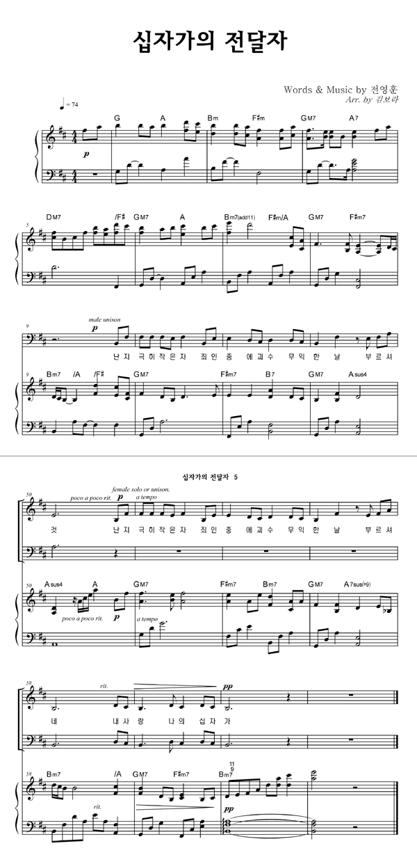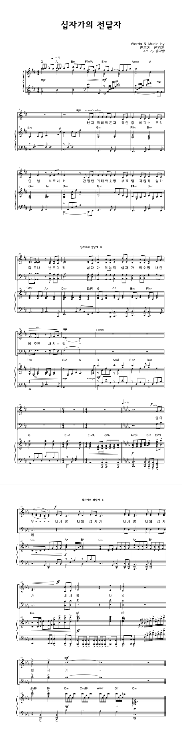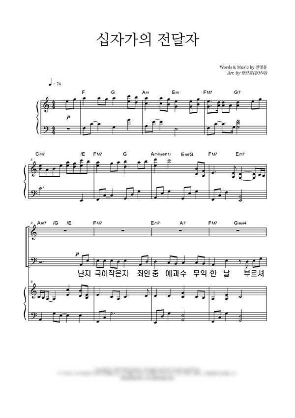| 십자가의 전달자 | 성가 2부 + 피아노 반주 |