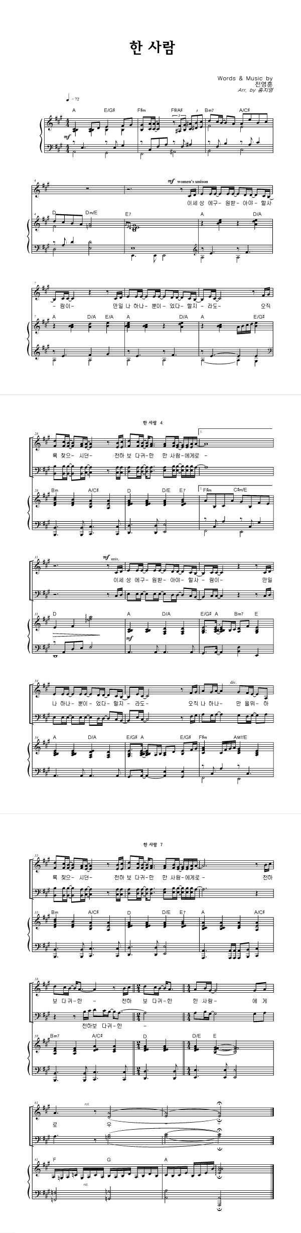 | 한 사람 | 성가 4부 + 피아노 반주 |