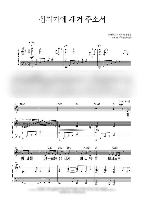 | 십자가에 새겨주소서 | 성가 2부 + 피아노 반주 |