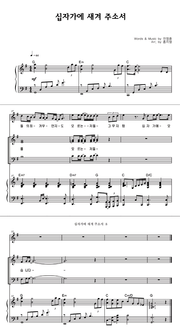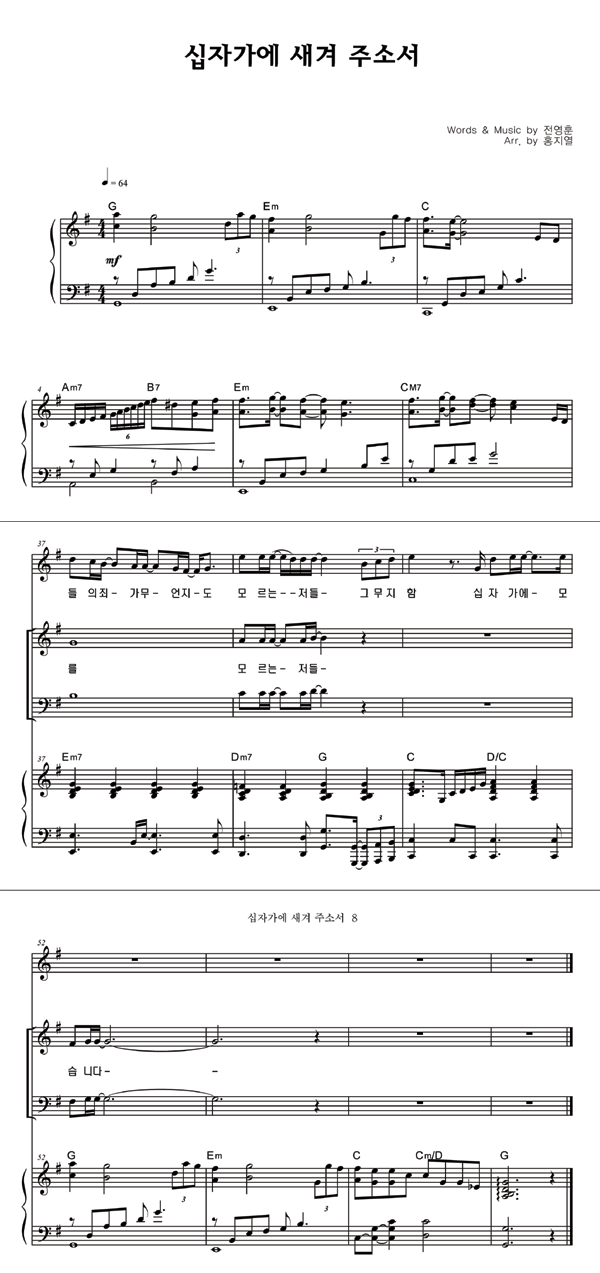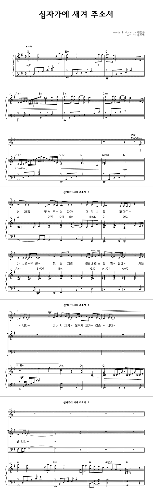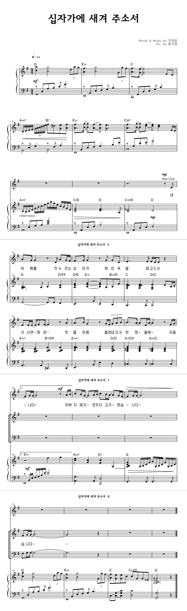 | 십자가에 새겨주소서 | 성가 3부 + 피아노 반주 |