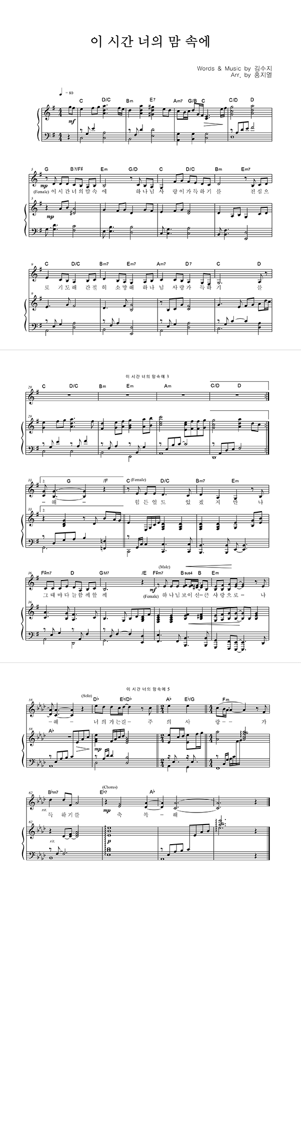 | 경배하리 내 온 맘 다해 | 성가 4부 + 피아노 반주 |