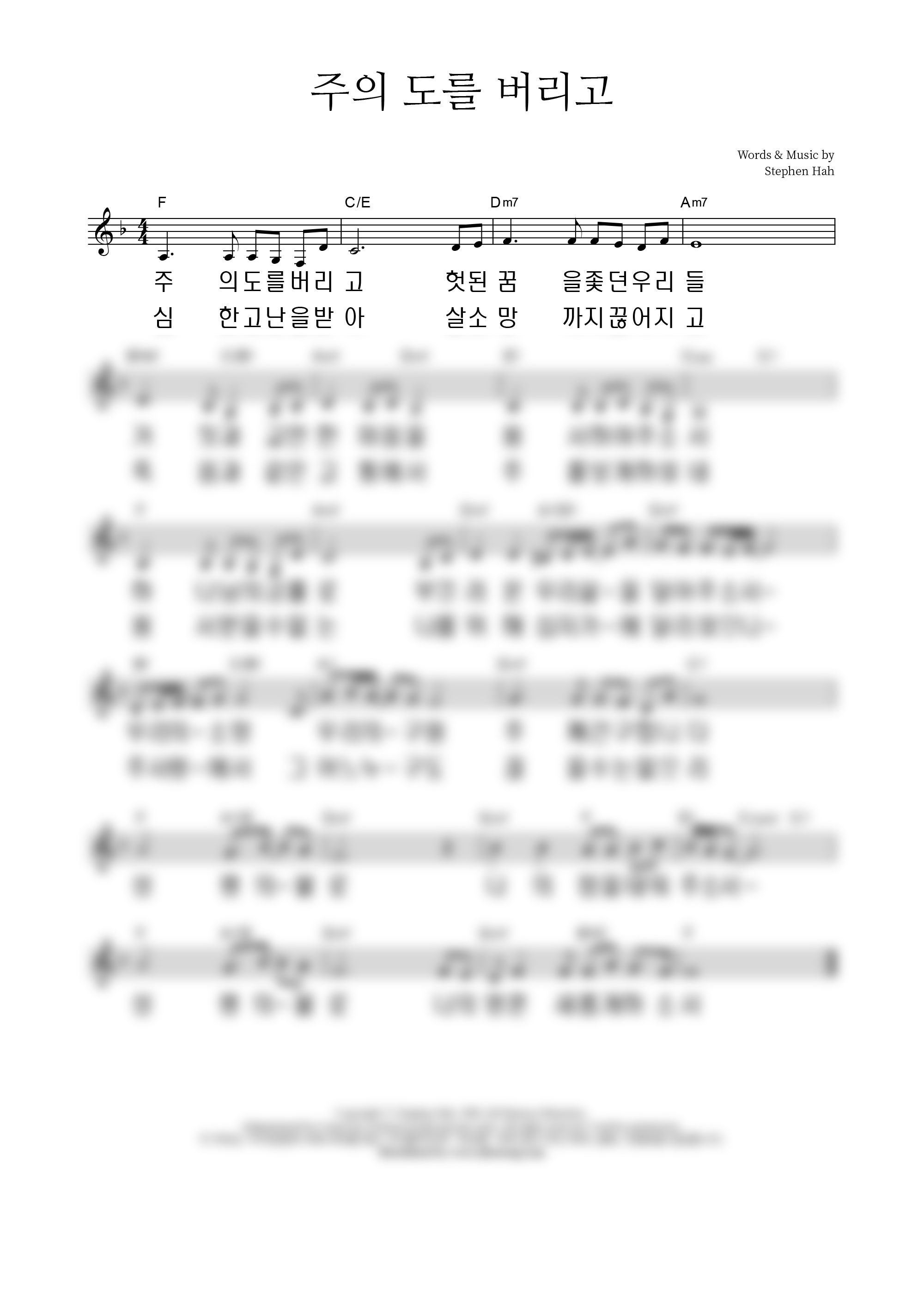 | 주의 신을 내가 떠나 | 성가 4부 + 피아노 반주 |
