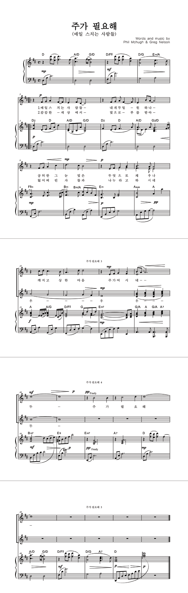 | 그 날 | 성가 2부 + 피아노 반주 |