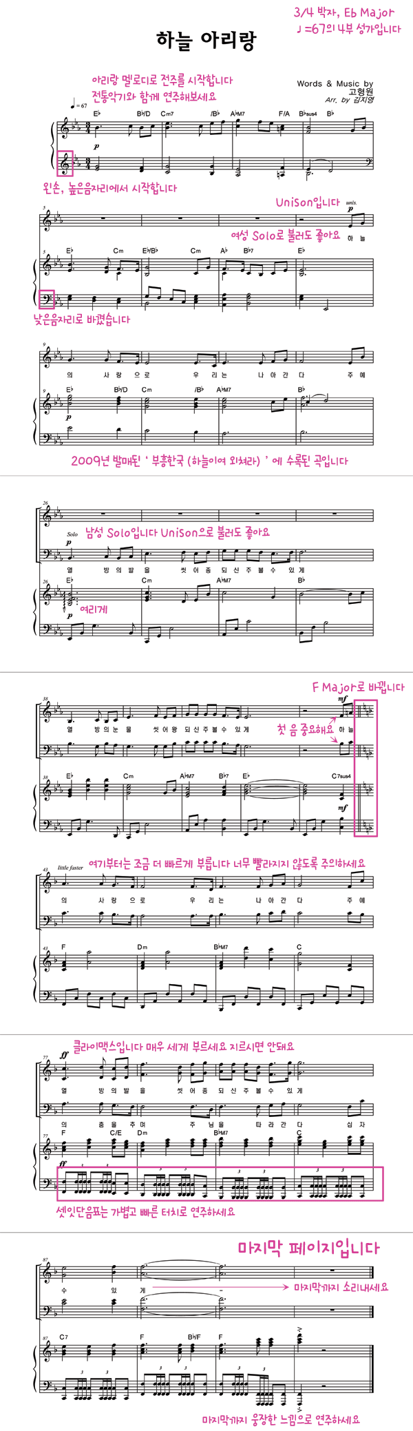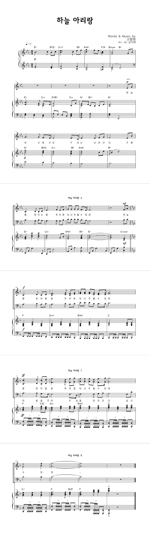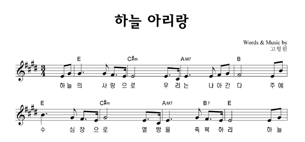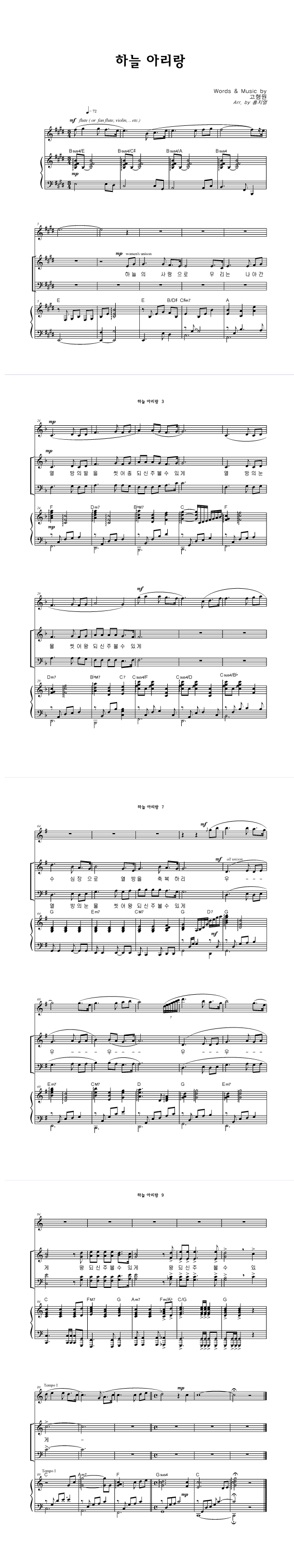 | 하늘 아리랑 | 성가 3부 + 피아노 반주 |