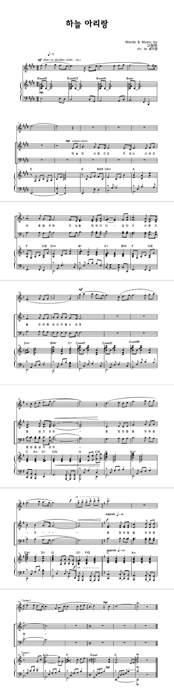 | 하늘 아리랑 | 성가 2부 + 피아노 반주 |