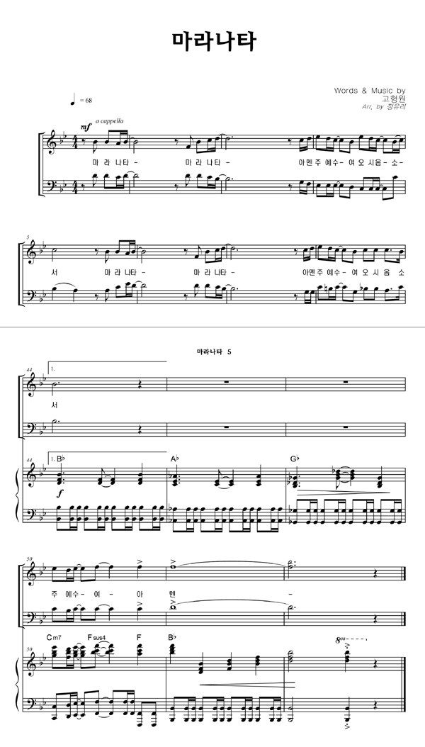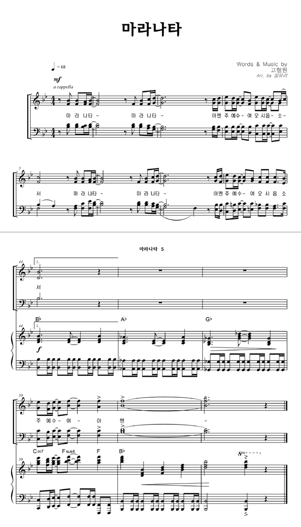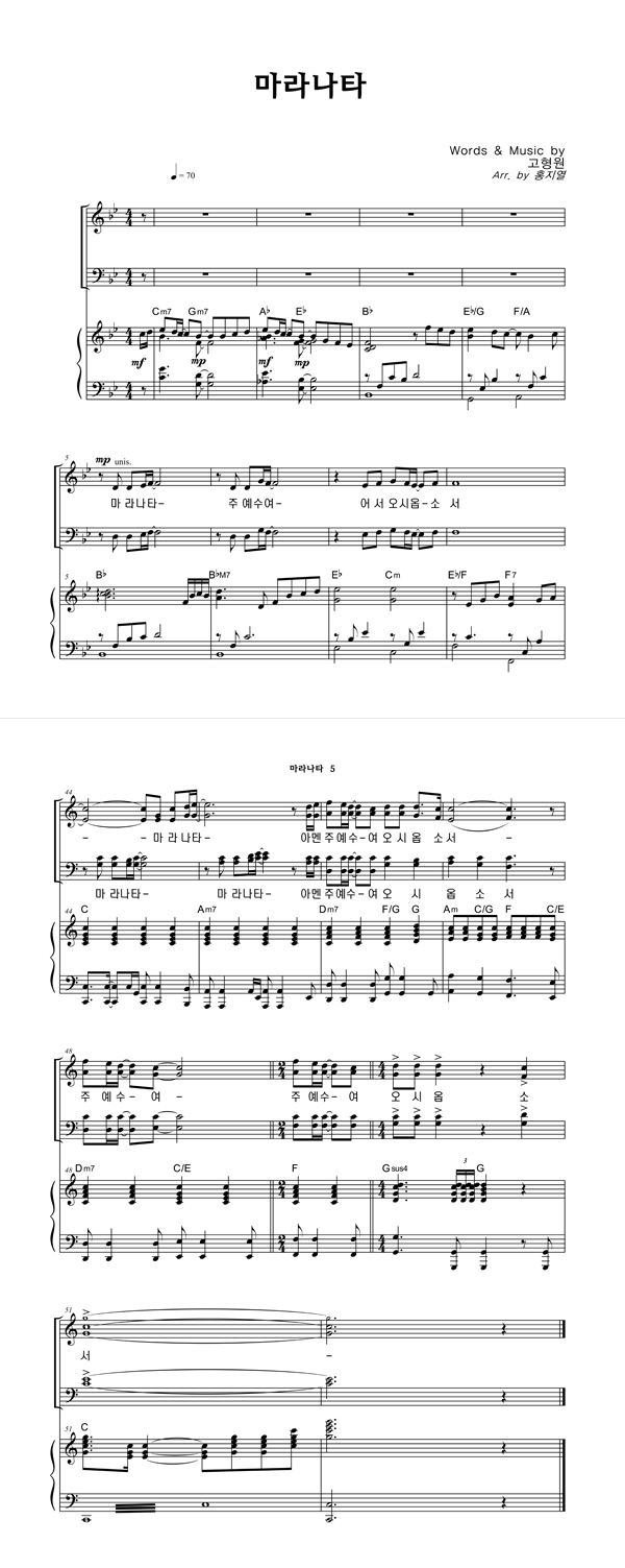 | 마라나타 | 성가 2부 + 피아노 반주 |