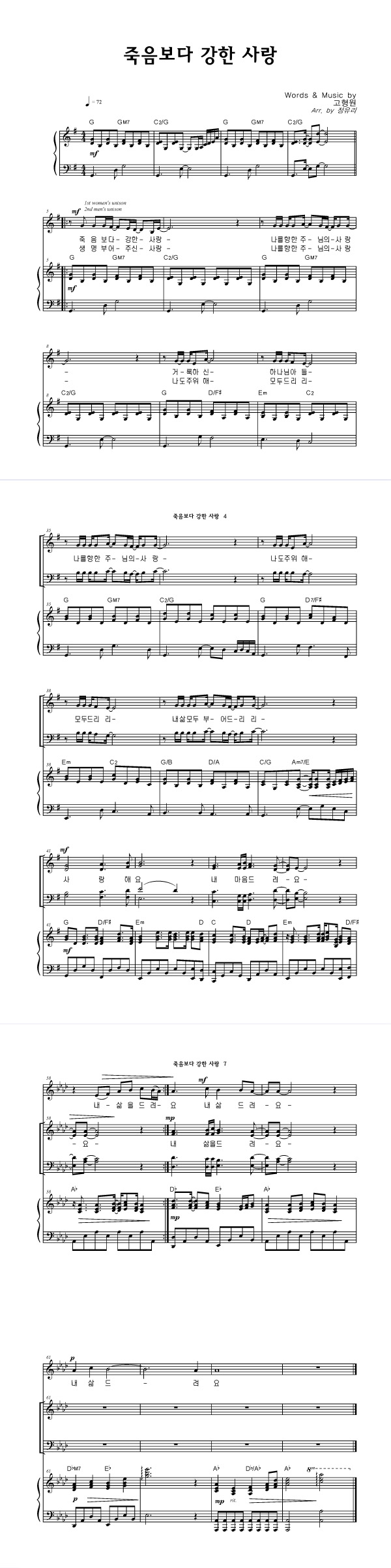 '죽음보다 강한 사랑' 의 다른 악보형식