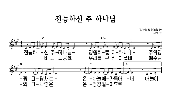 | 전능하신 주 하나님 큰글씨 | 단선 |