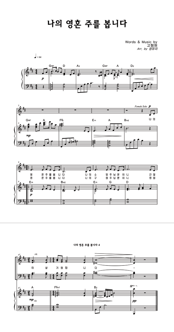 | 나의 영혼 주를 봅니다 | 성가 4부 + 피아노 반주 |
