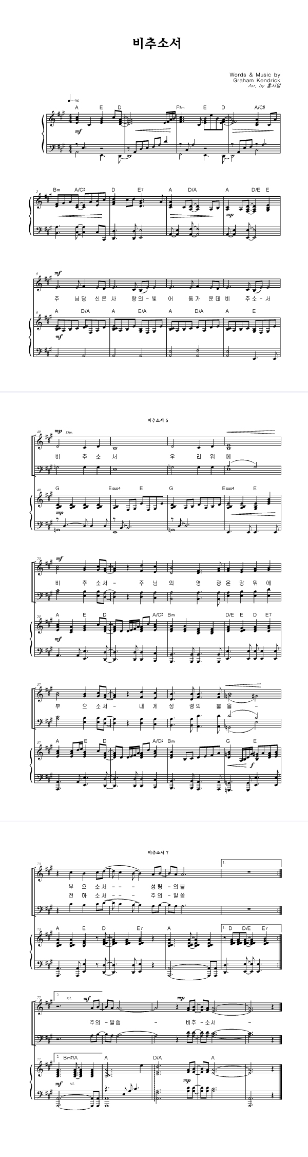 | 비추소서 | 성가 4부 + 피아노 반주 |
