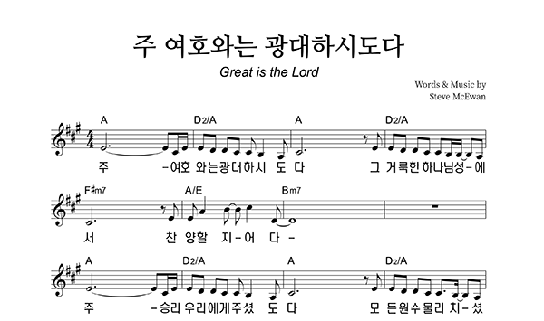 | 주 여호와는 광대하시도다 | 성가 4부 + 피아노 반주 |