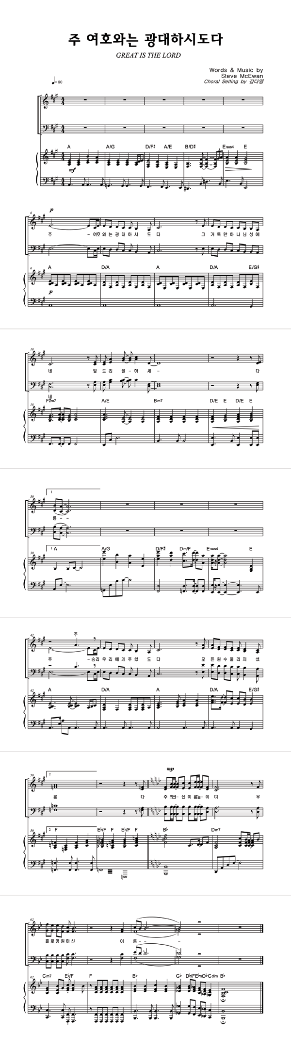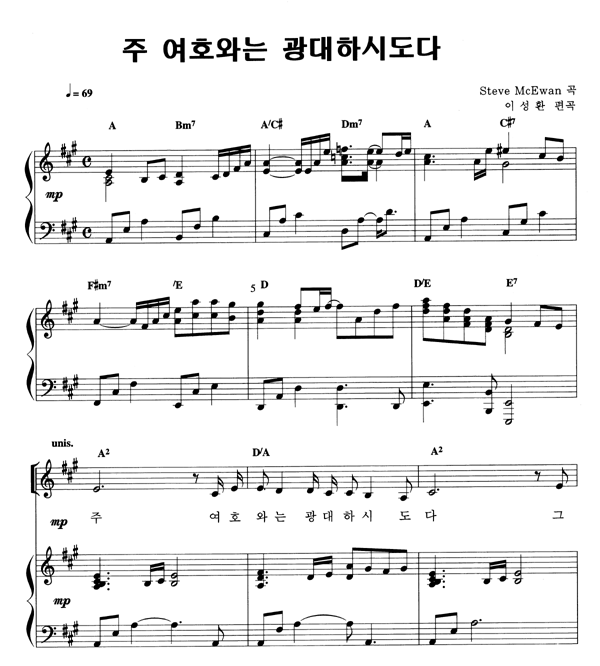 | 주 여호와는 광대하시도다 | 성가 4부 + 피아노 반주 |