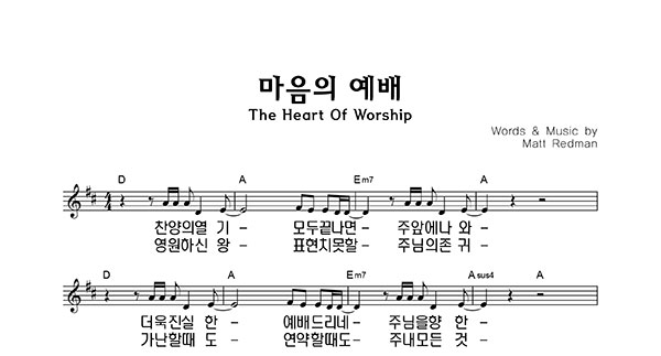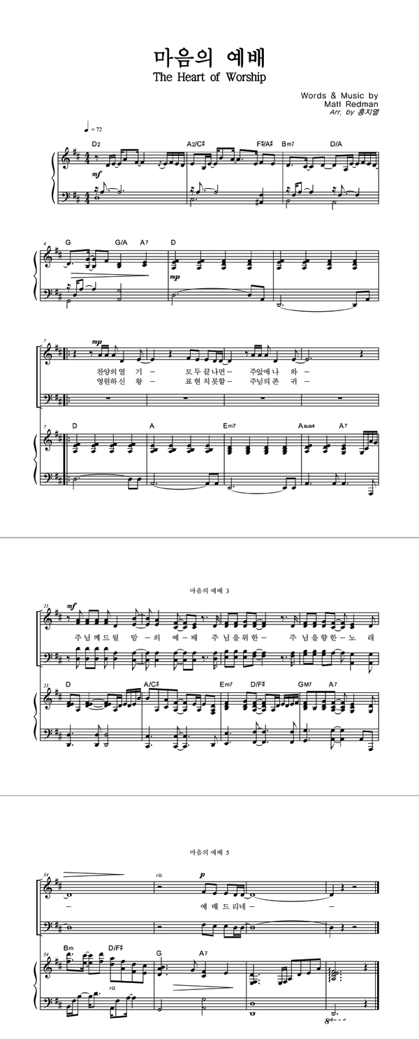 | 마음의 예배 | 성가 4부 + 피아노 반주 |