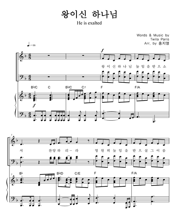 | 왕이신 하나님 | 성가 4부 + 피아노 반주 |