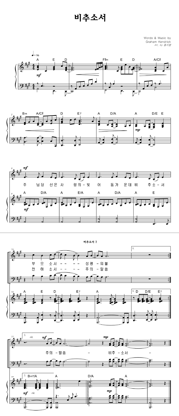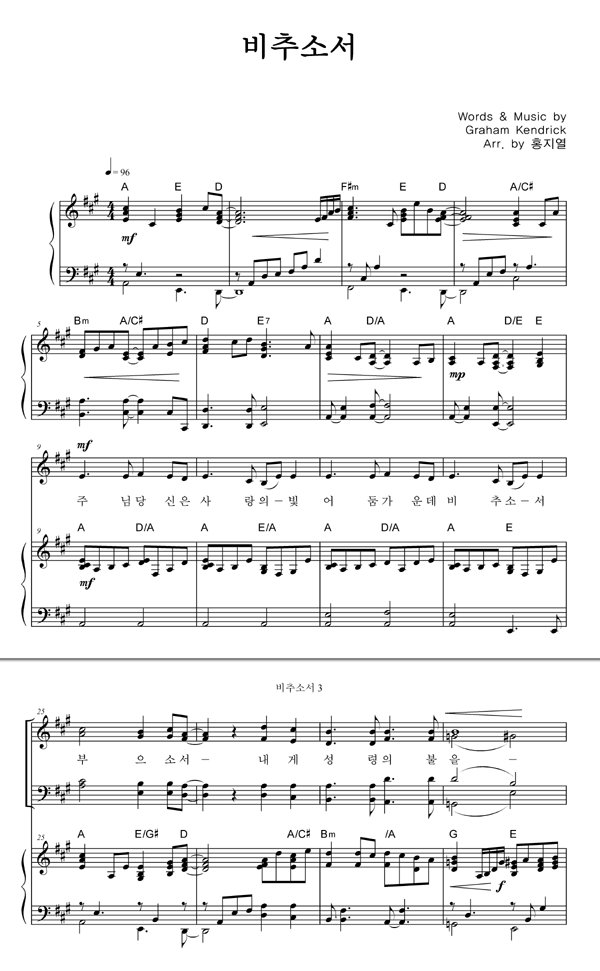 | 비추소서 | 성가 4부 + 피아노 반주 |