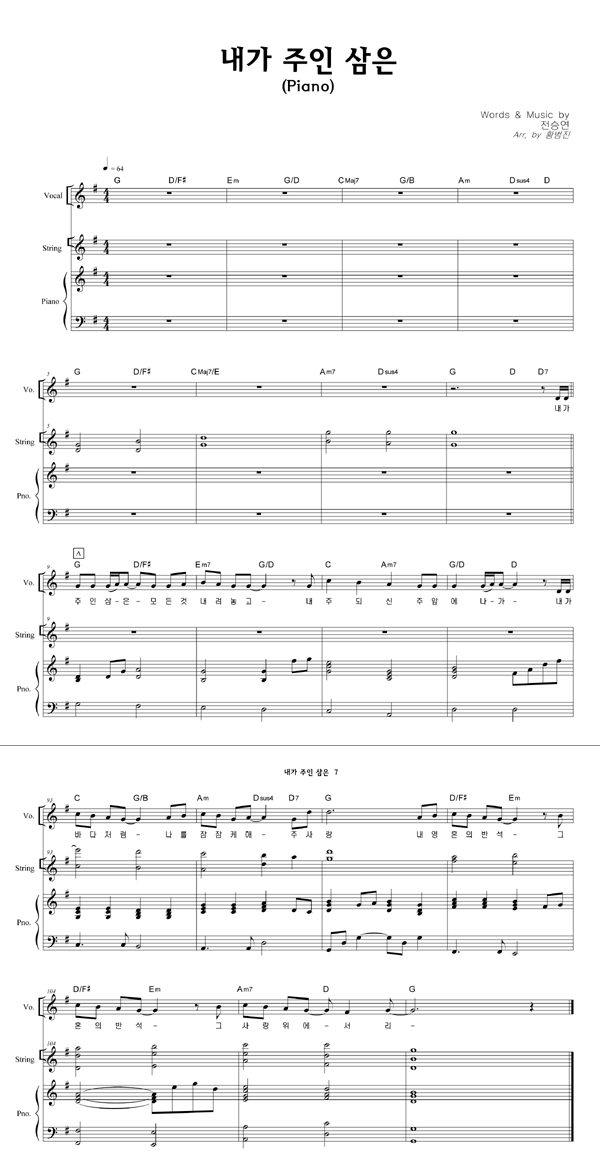 | 내가 주인 삼은 | 성가 3부 + 피아노 반주 |