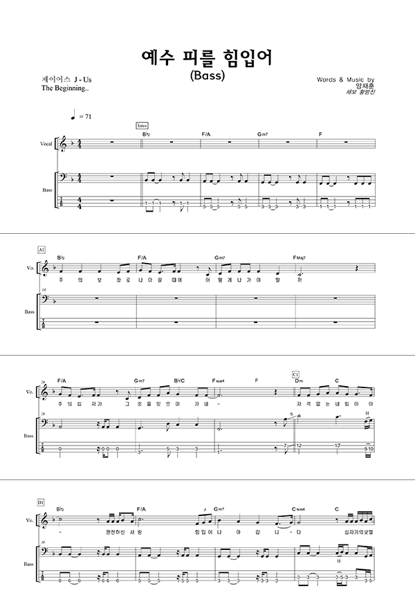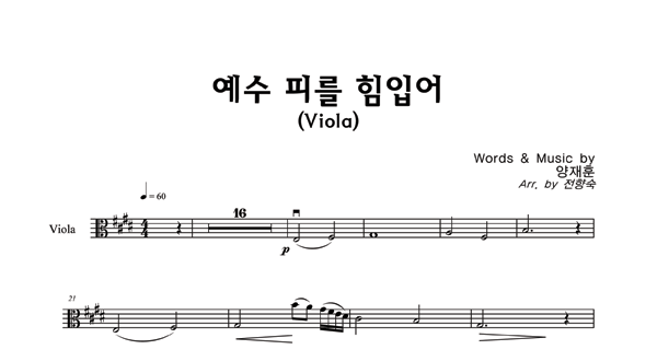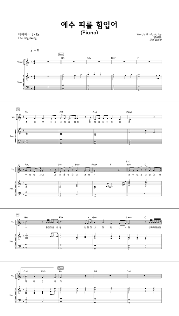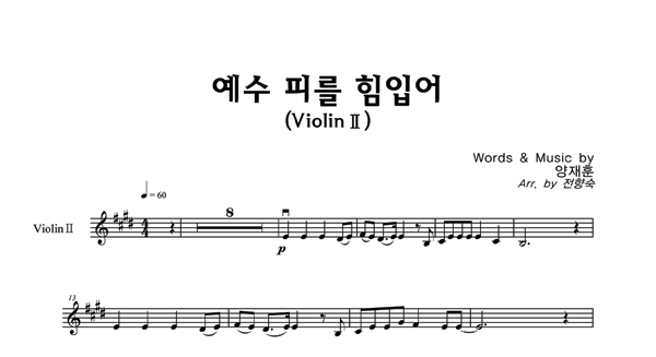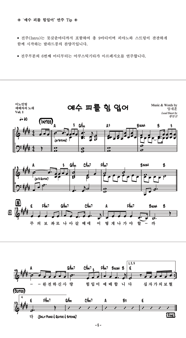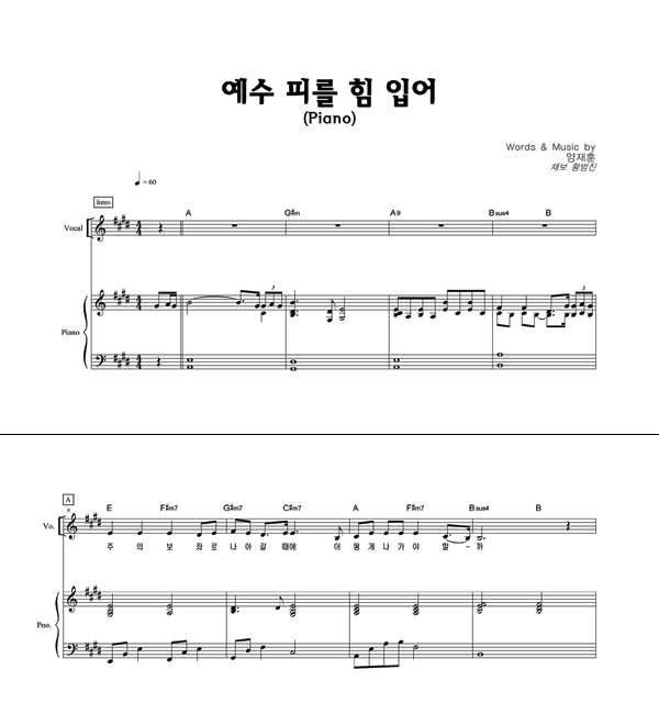 | 예수 피를 힘입어 | 성가 2부 + 피아노 반주 |