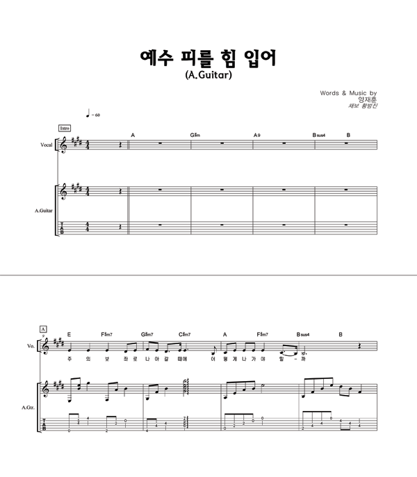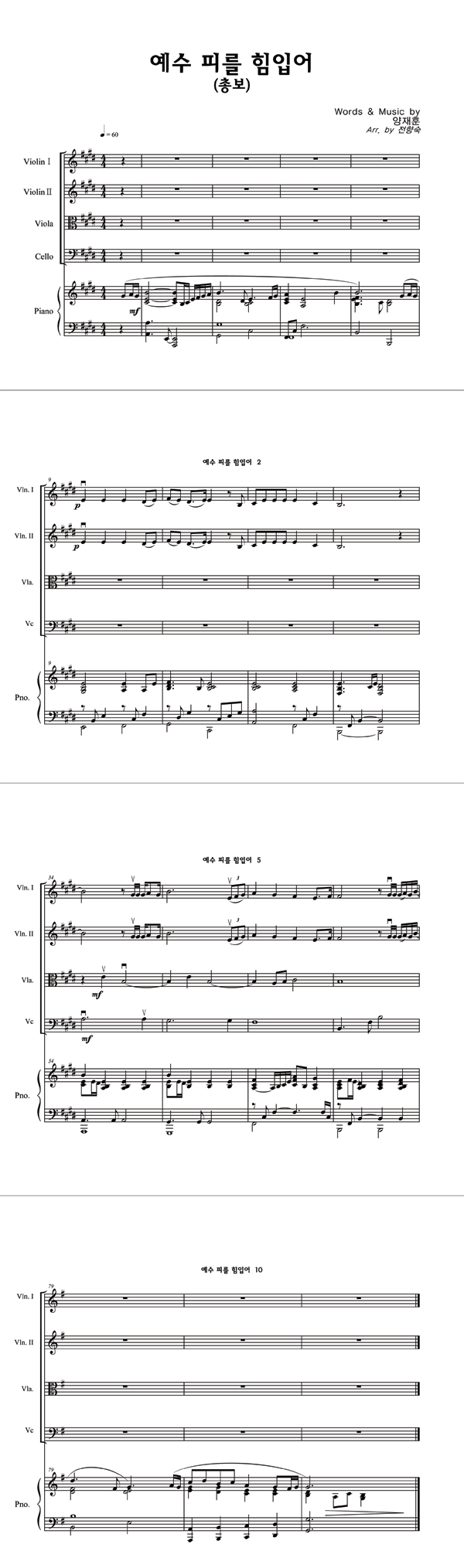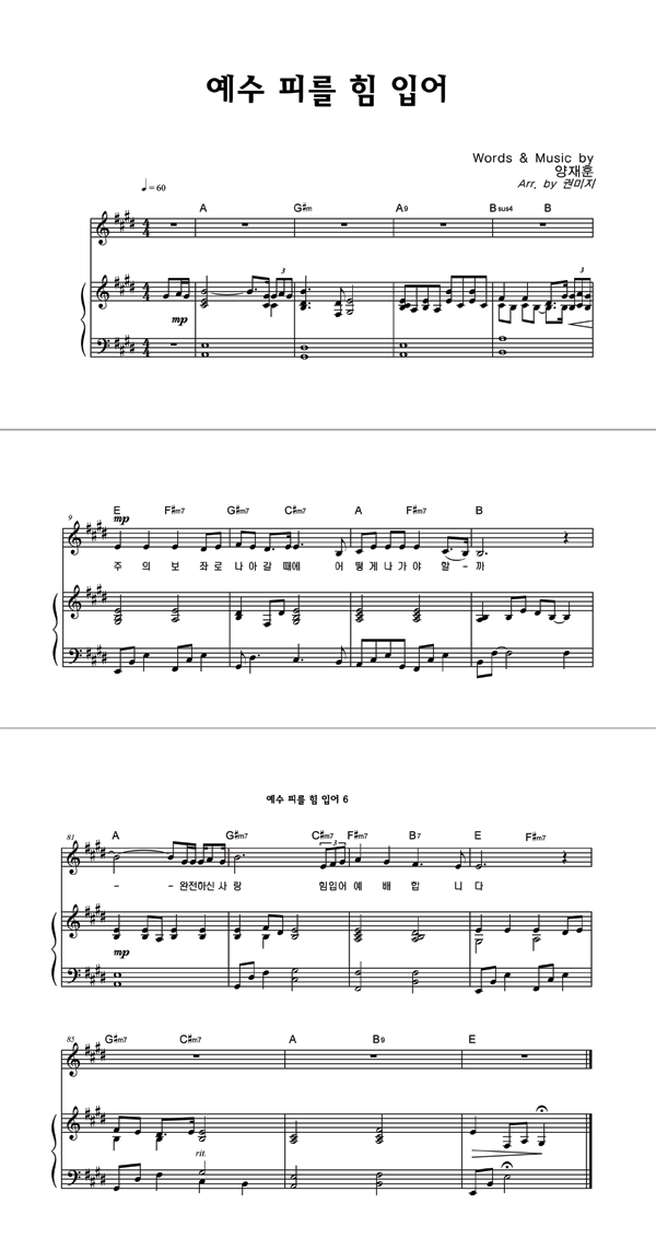| 예수 피를 힘입어 | 성가 4부 + 피아노 반주 |