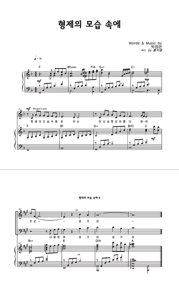 | 형제의 모습 속에 | 성가 2부 + 피아노 반주 |