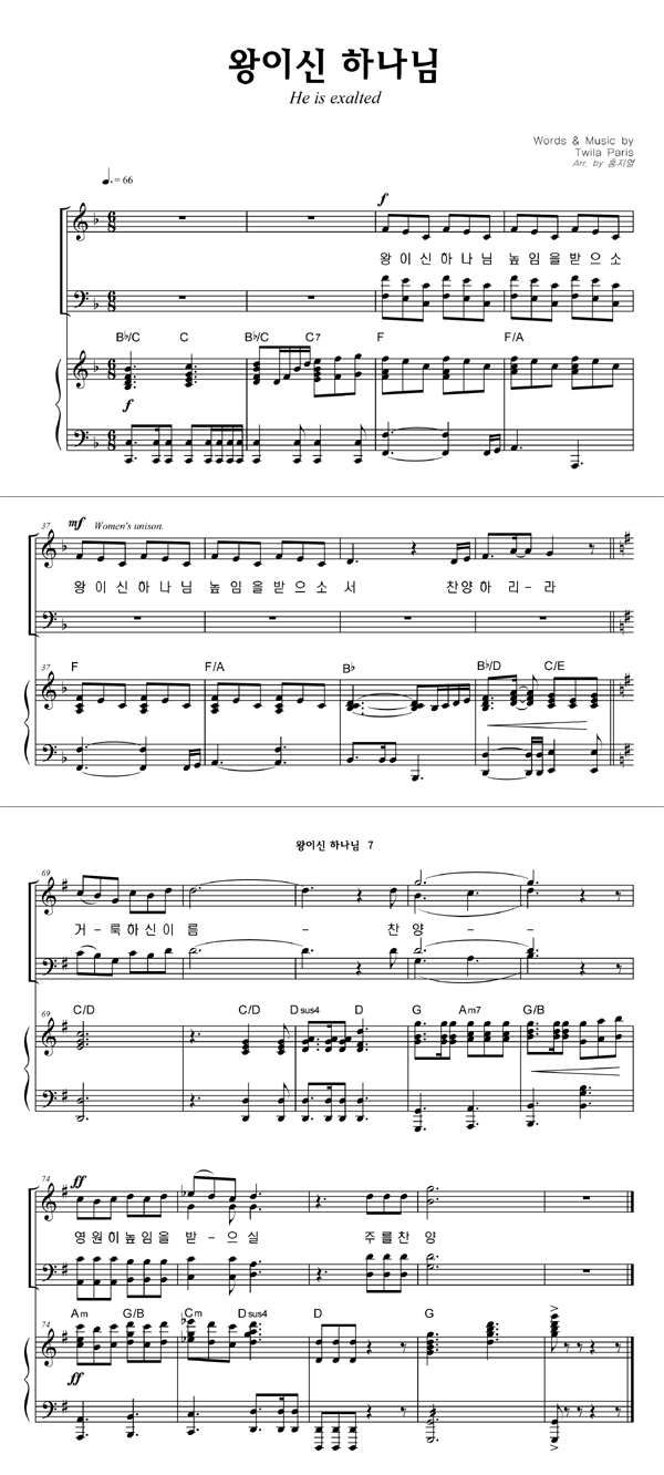 | 왕이신 하나님 | 성가 4부 + 피아노 반주 |