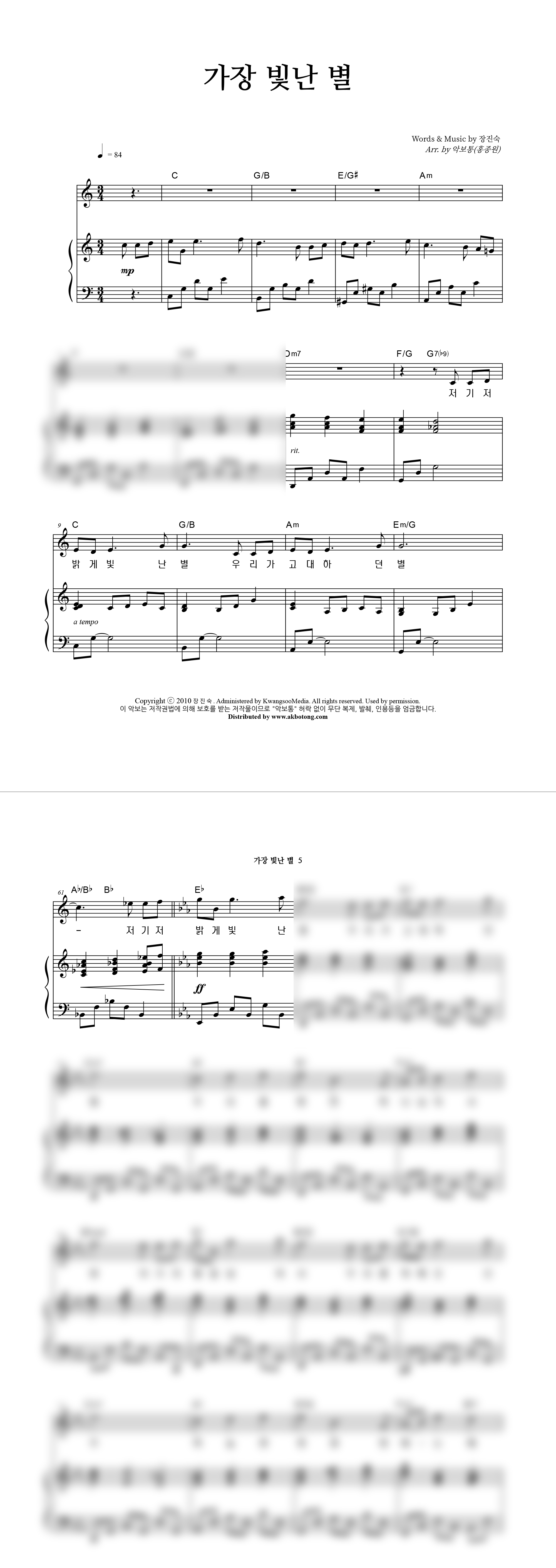 | 가장 빛난 별 | 성가 2부 + 피아노 반주 |