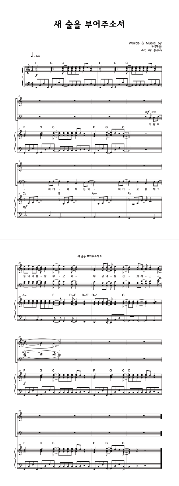| 새 술을 부어주소서 | 성가 3부 + 피아노 반주 |