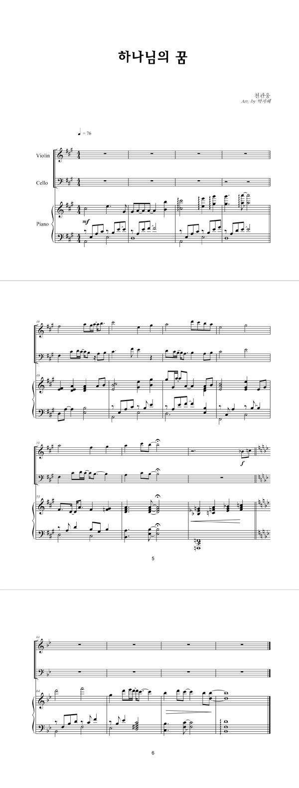 '하나님의 꿈' 의 다른 악보형식