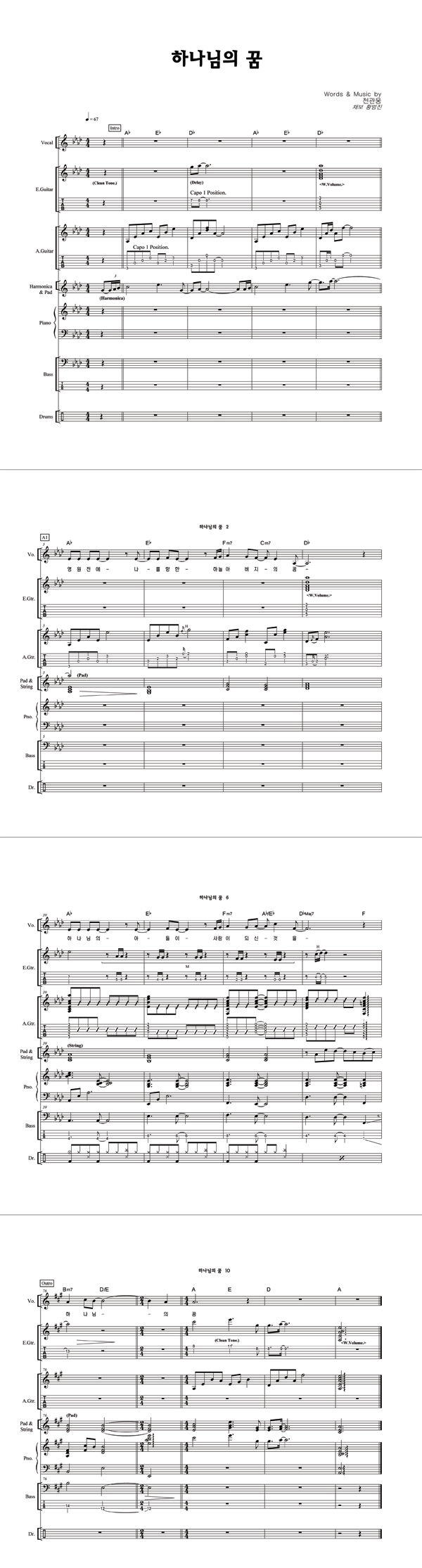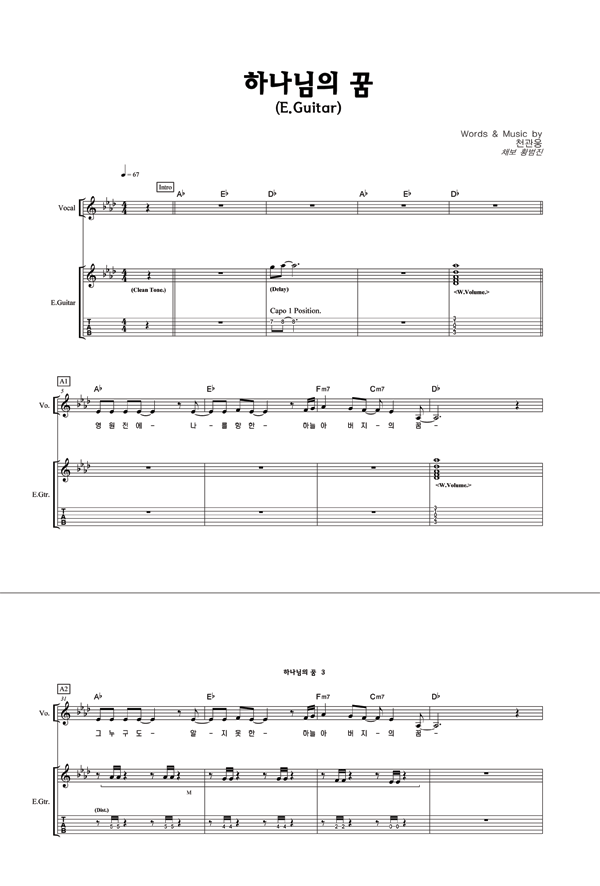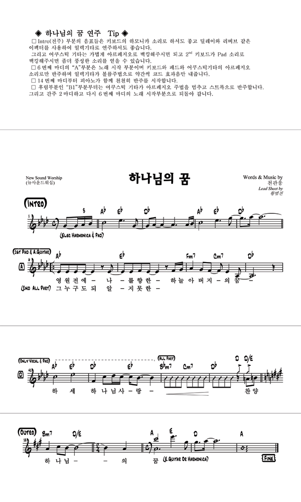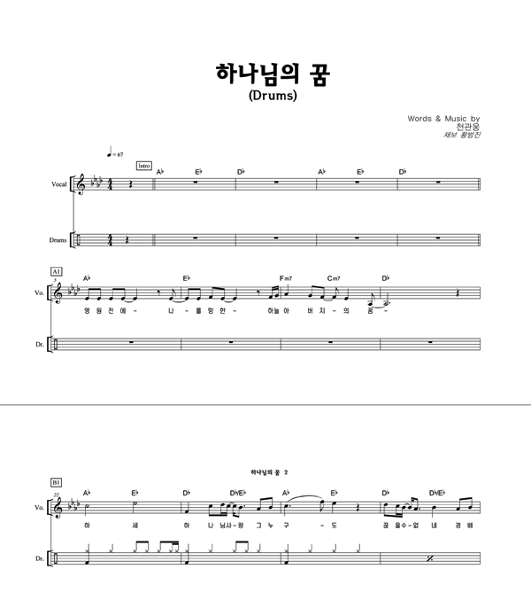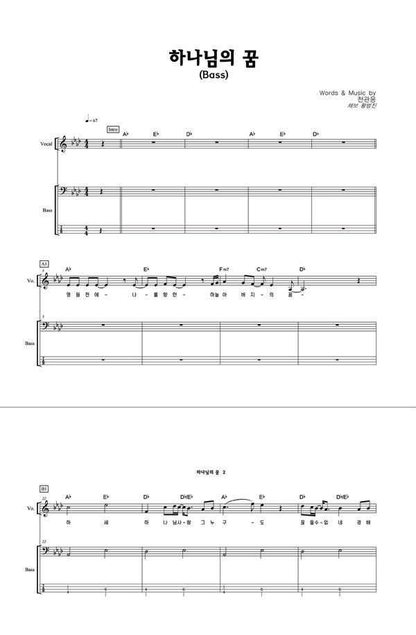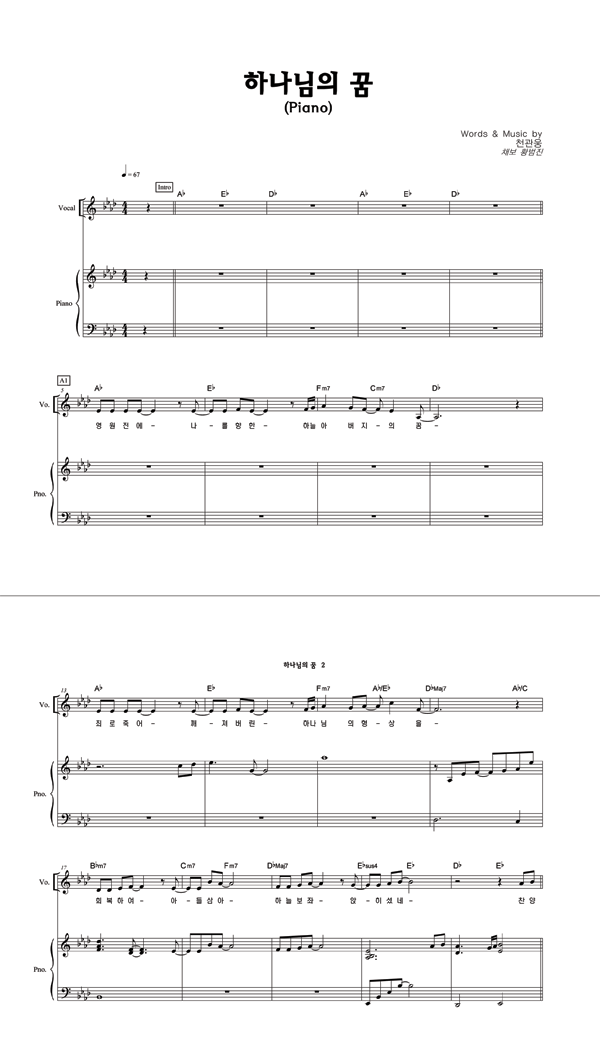 | 하나님의 꿈 | 성가 2부 + 피아노 반주 |