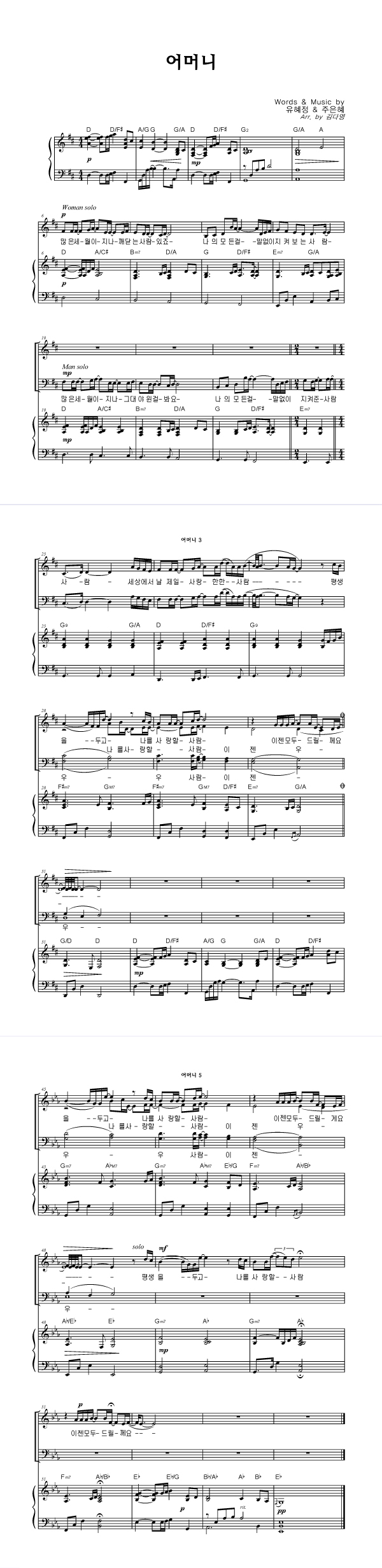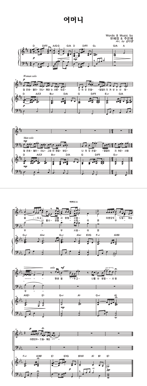 '어머니' 의 다른 악보형식