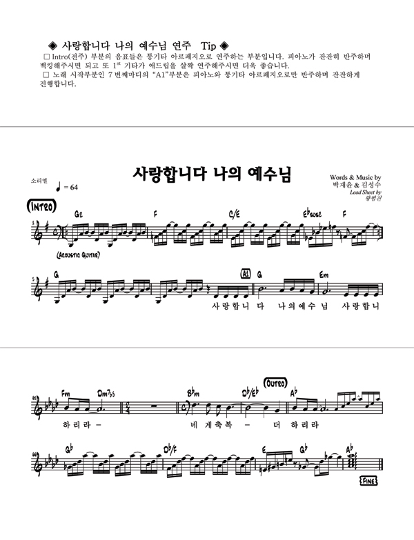 '사랑합니다 나의 예수님' 의 다른 악보형식