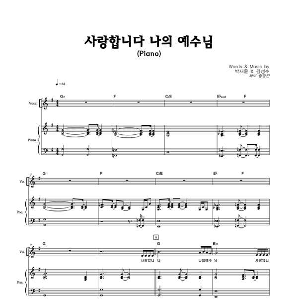 | 사랑합니다 나의 예수님 | 성가 2부 + 피아노 반주 |