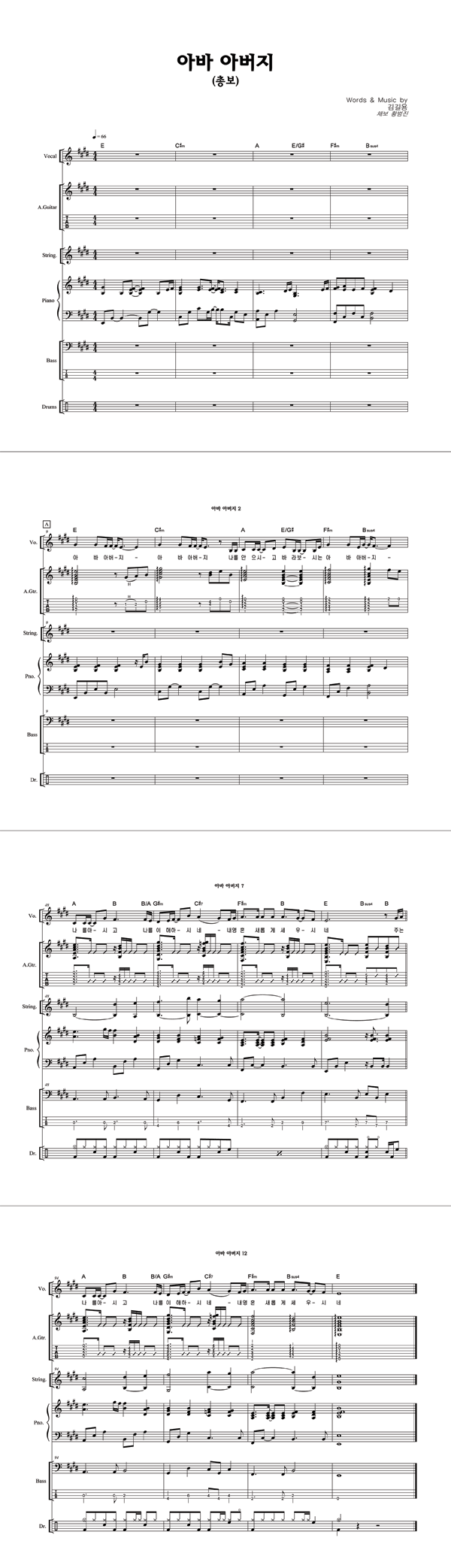 | 아바 아버지 | 성가 2부 + 피아노 반주 |