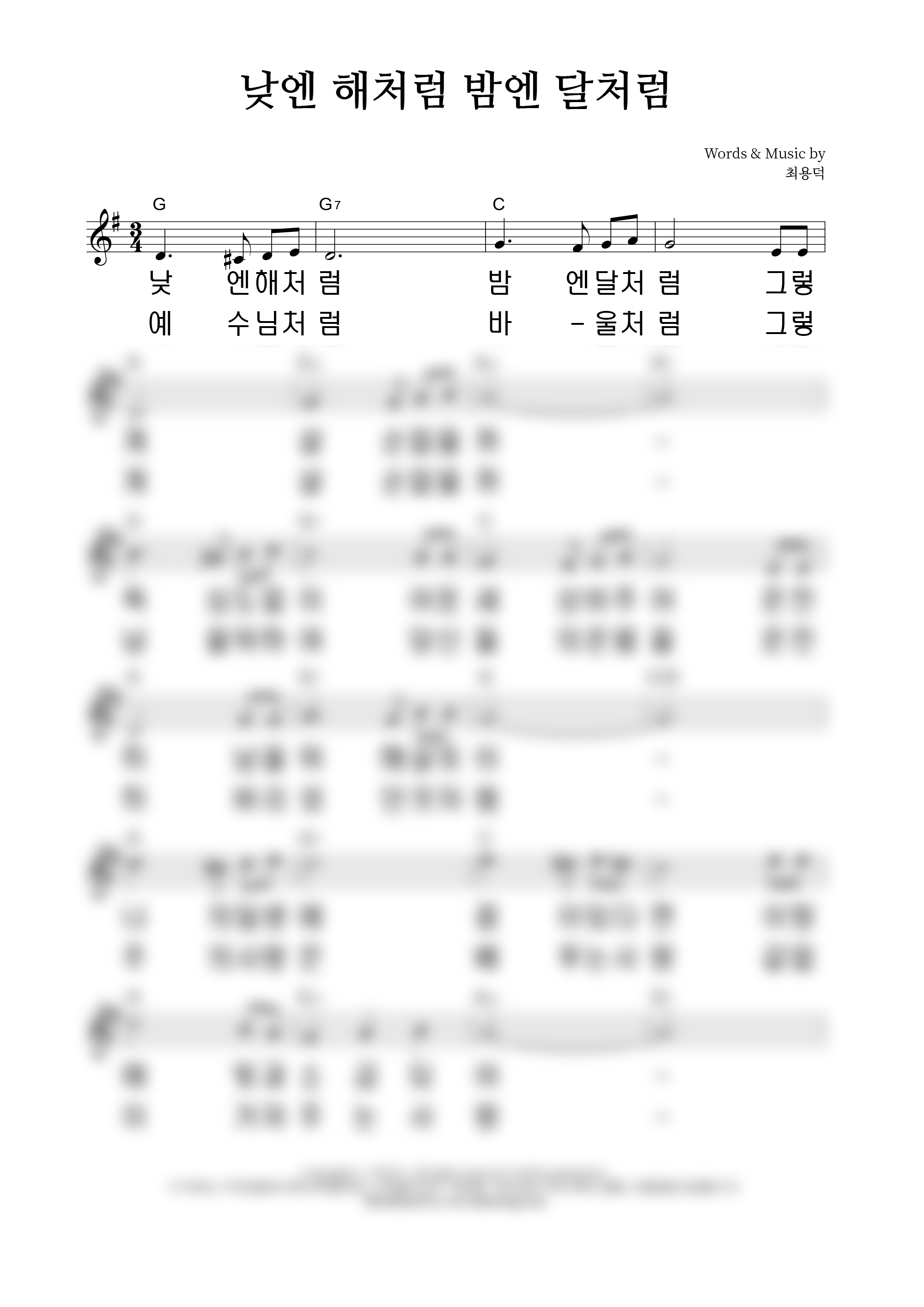 | 낮엔 해처럼 밤엔 달처럼 | 성가 4부 + 피아노 반주 |