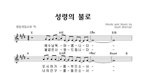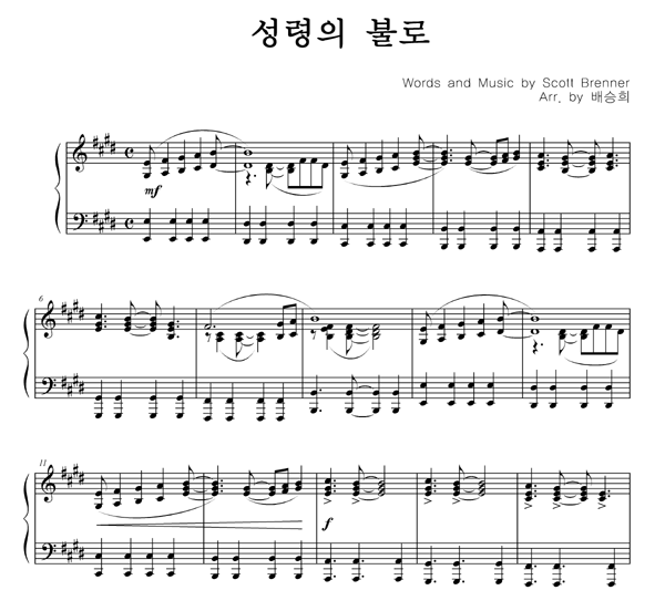 | 성령의 불로 | 성가 4부 + 피아노 반주 |