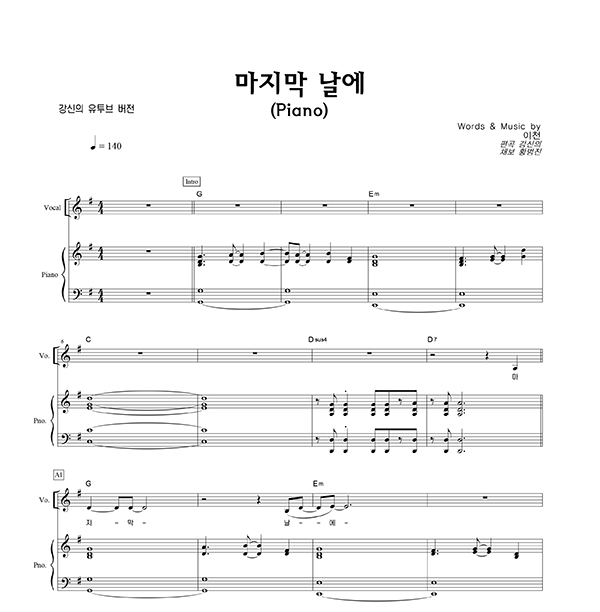 | 마지막 날에 | 성가 2부 + 피아노 반주 |