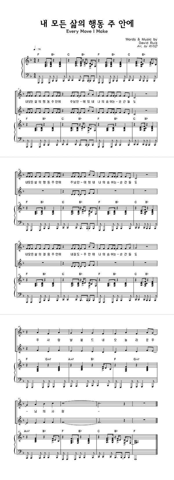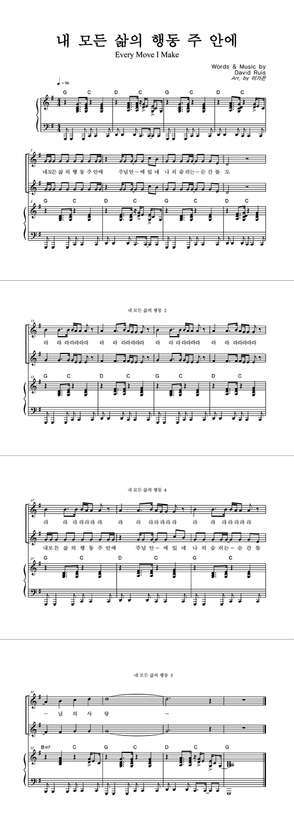 | 내 모든 삶의 행동 주 안에 | 성가 2부 + 피아노 반주 |