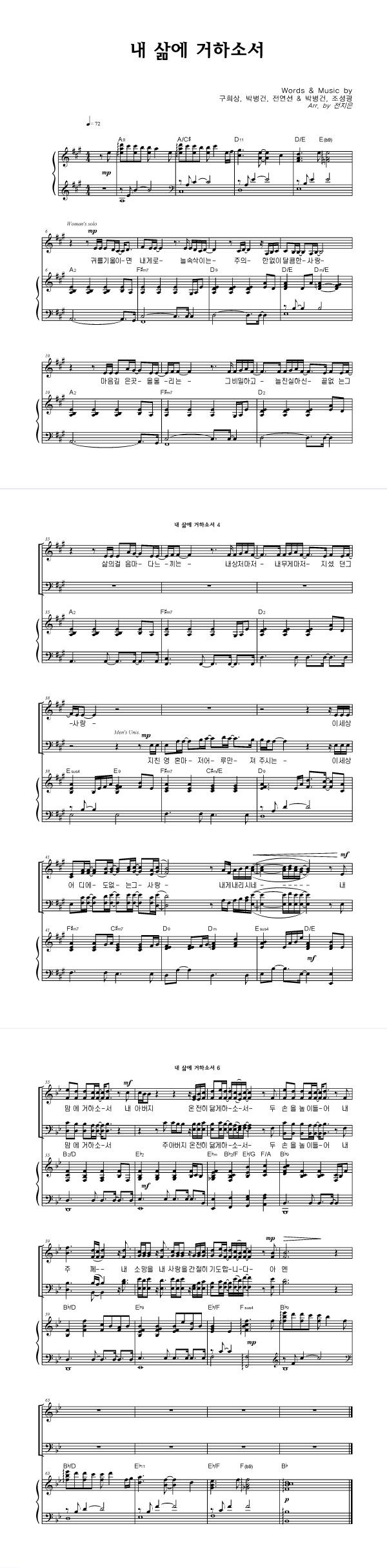 | 내 삶에 거하소서 | 성가 2부 + 피아노 반주 |