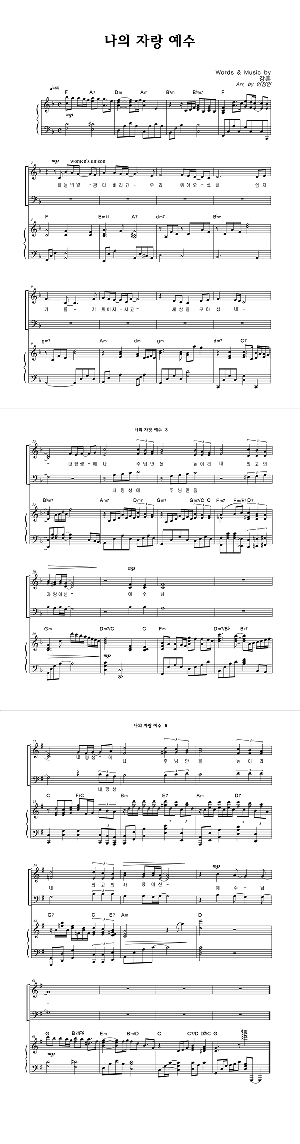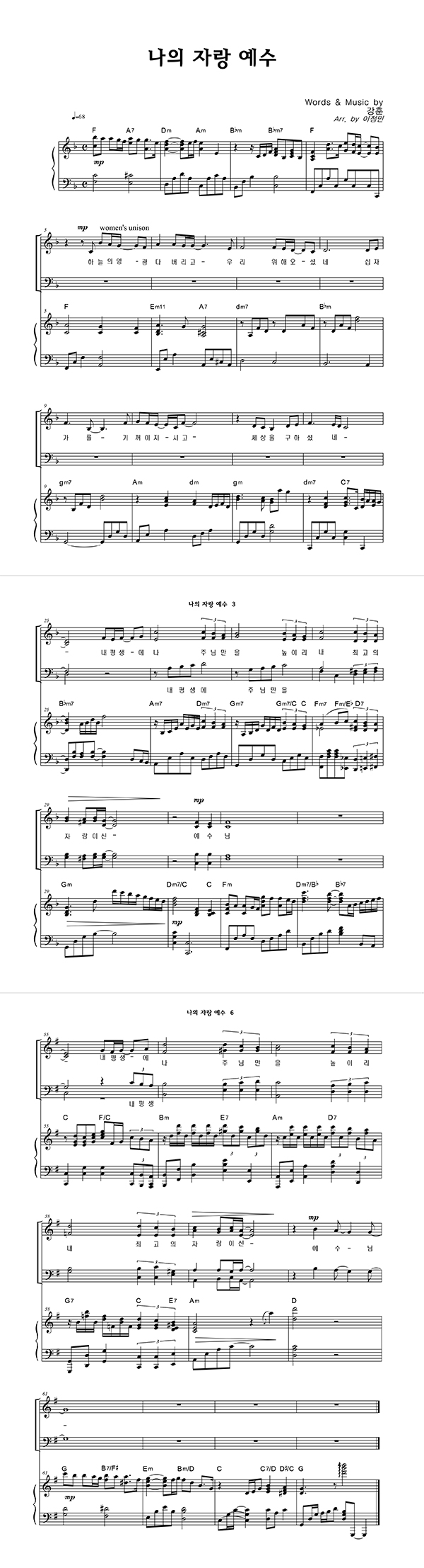 | 나의 자랑 예수 | 성가 3부 + 피아노 반주 |