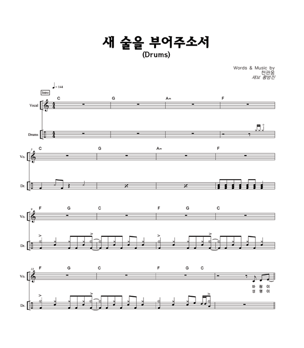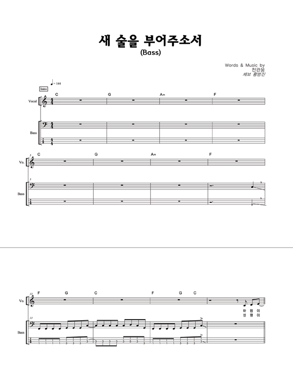 | 새 술을 부어주소서 | 성가 4부 + 피아노 반주 |