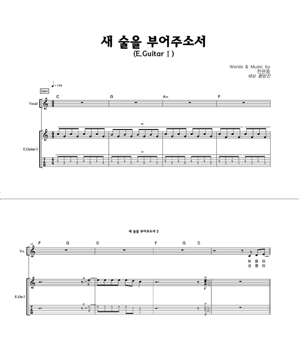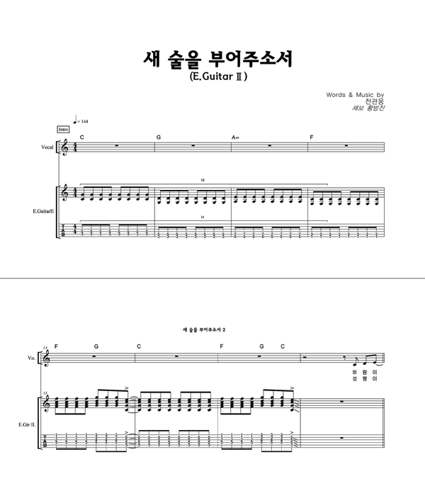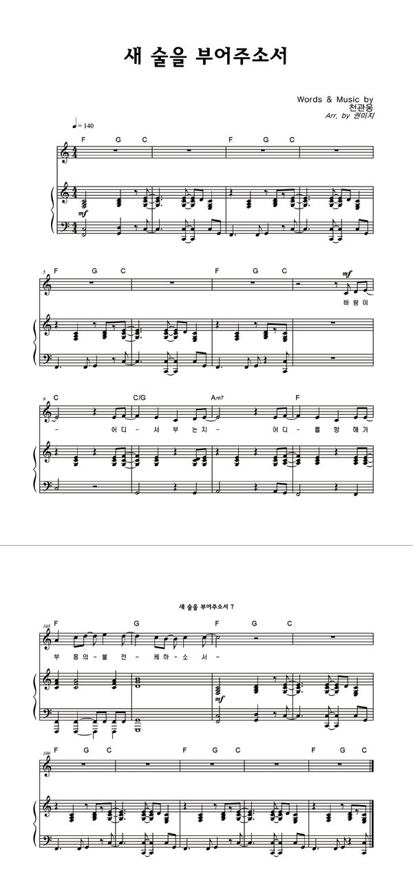 | 새 술을 부어주소서 | 성가 2부 + 피아노 반주 |