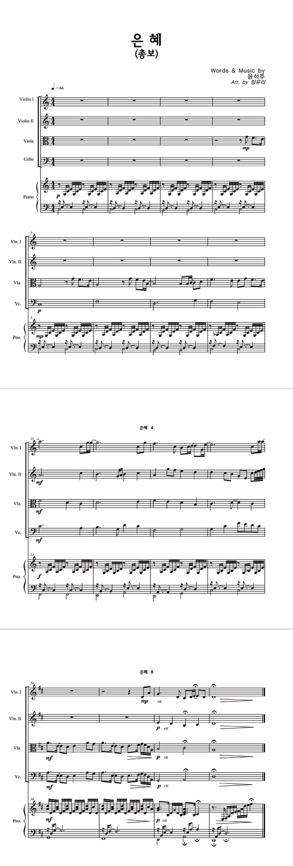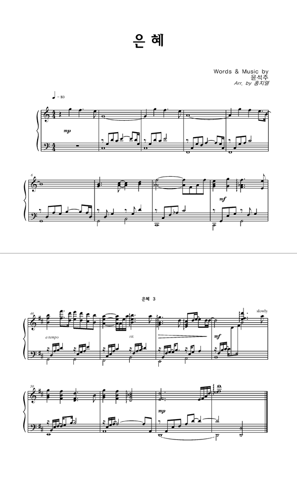 | 은혜 | 성가 2부 + 피아노 반주 |