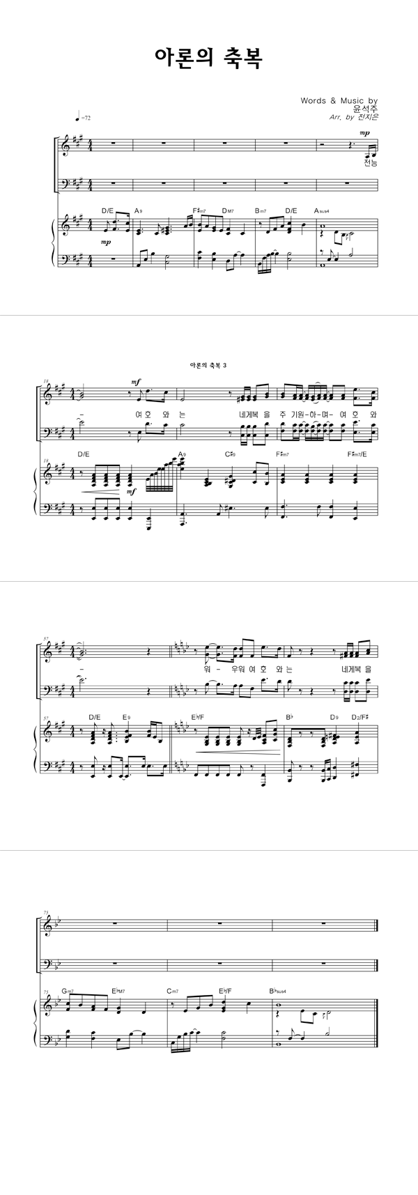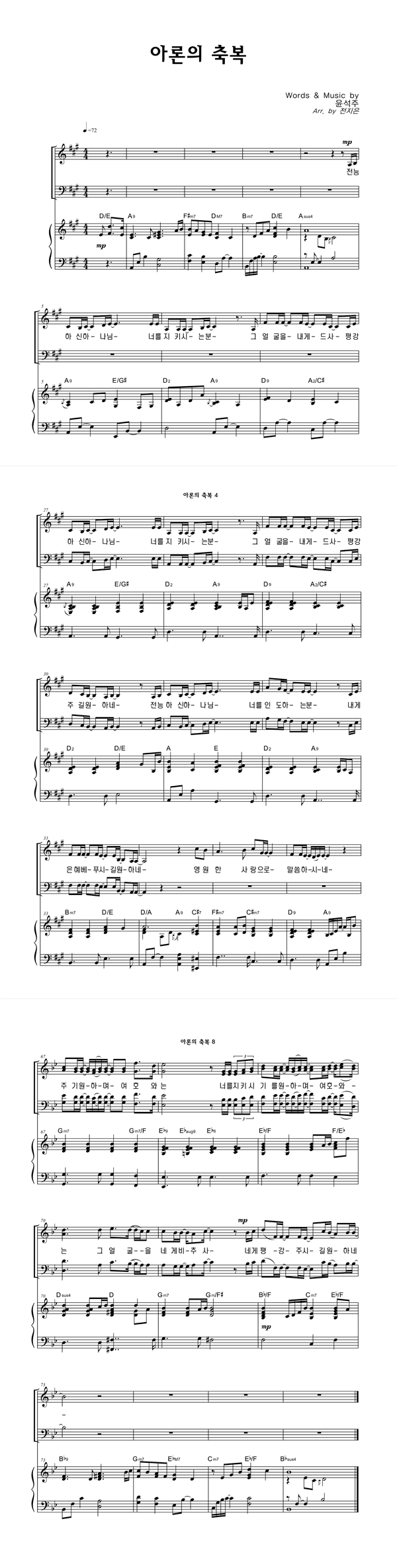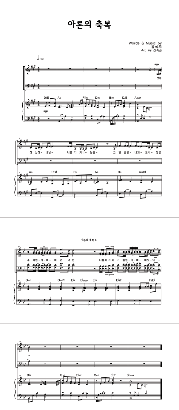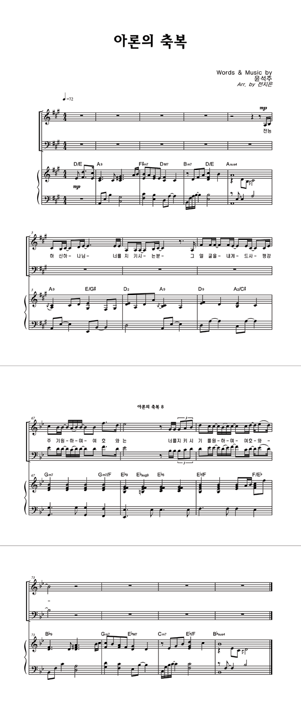| 아론의 축복 | 성가 3부 + 피아노 반주 |